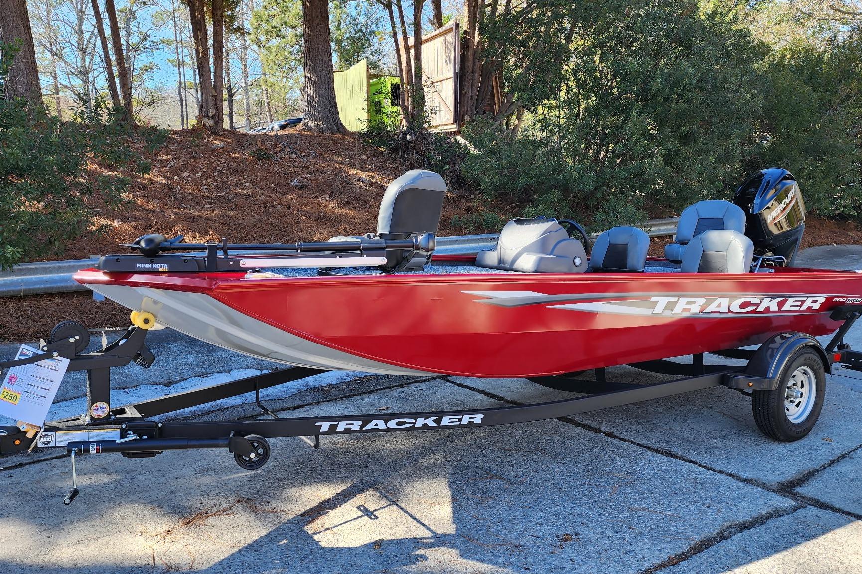The TRACKER® PRO 170 is expertly crafted to offer a perfect balance of spacious fishing area, easy towing and storage, and a range of tournament-ready features. Equipped with a Mercury® outboard motor, Minn Kota® Edge trolling motor, Garmin® Striker 4 color fishfinder, aerated livewell, VERSATRACK® accessory-mounting channels, and more, this boat is packed with essential tools for a successful day on the water. Built with meticulous attention to quality, each PRO 170 provides peace of mind and durability, ensuring lasting memories. Its vibrant, durable finish is achieved through our next-generation DIAMOND COAT 3.0 paint process, which maintains its brilliance with minimal maintenance. From its thoughtful design to its comprehensive features, the PRO 170 exemplifies TRACKER’s dedication to equipping anglers for success. Cast with confidence—your adventure begins with the TRACKER® PRO 170 beneath you.