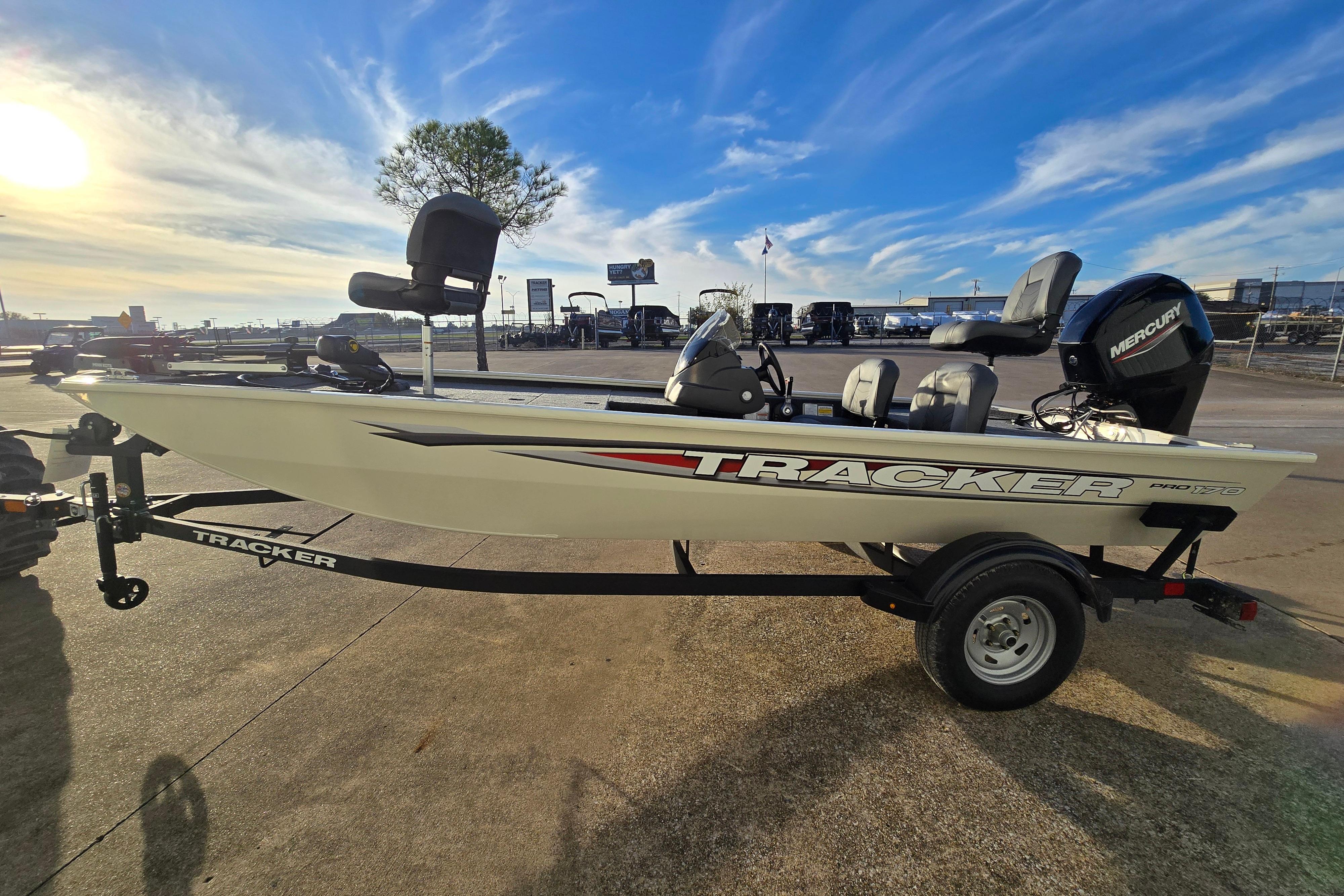 The TRACKER® PRO 170 is expertly crafted to offer a perfect balance of spacious fishing area, easy towing and storage, and a range of tournament-ready features. Equipped with a Mercury® outboard motor, Minn Kota® Edge trolling motor, Garmin® Striker 4 color fishfinder, aerated livewell, VERSATRACK® accessory-mounting channels, and more, this boat is packed with essential tools for a successful day on the water. Built with meticulous attention to quality, each PRO 170 provides peace of mind and durability, ensuring lasting memories. Its vibrant, durable finish is achieved through our next-generation DIAMOND COAT 3.0 paint process, which maintains its brilliance with minimal maintenance. From its thoughtful design to its comprehensive features, the PRO 170 exemplifies TRACKER’s dedication to equipping anglers for success. Cast with confidence—your adventure begins with the TRACKER® PRO 170 beneath you.