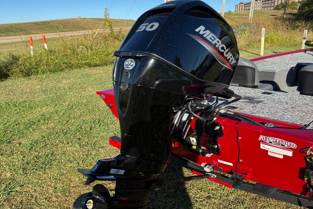 • Robotically welded, all-aluminum box-beam transom w/corner braces welded-in to unitize & strengthen the hull