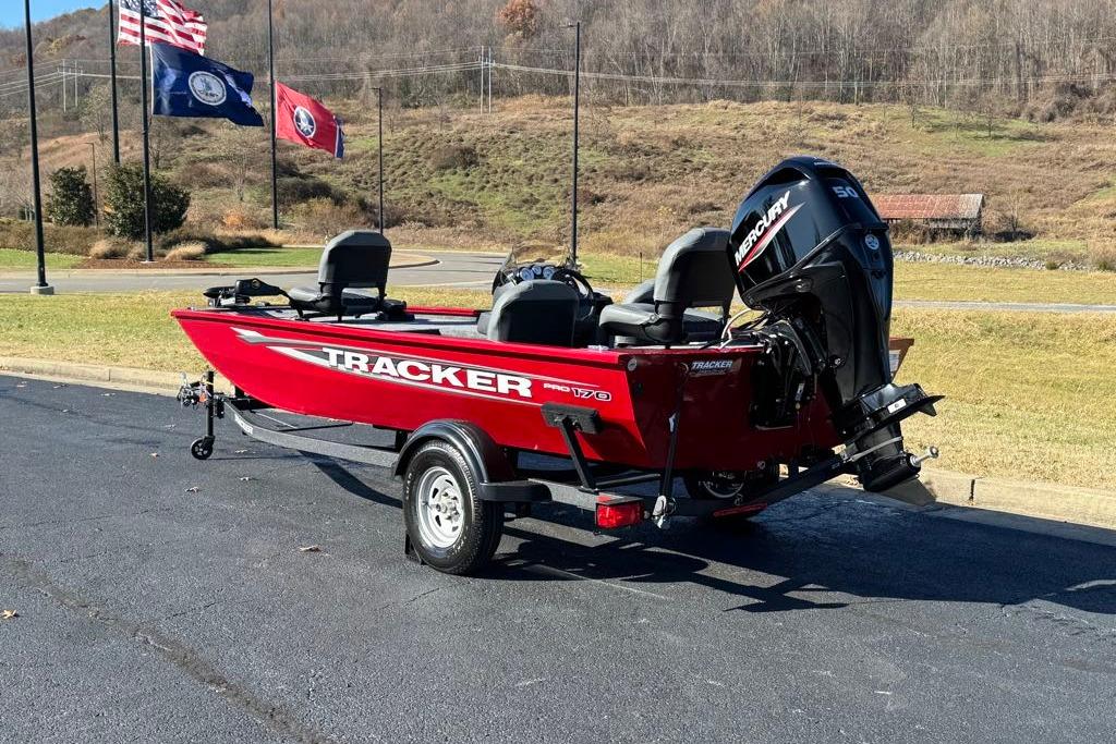 The TRACKER® PRO 170 is expertly crafted to offer a perfect balance of spacious fishing area, easy towing and storage, and a range of tournament-ready features. Equipped with a Mercury® outboard motor, Minn Kota® Edge trolling motor, Garmin® Striker 4 color fishfinder, aerated livewell, VERSATRACK® accessory-mounting channels, and more, this boat is packed with essential tools for a successful day on the water. Built with meticulous attention to quality, each PRO 170 provides peace of mind and durability, ensuring lasting memories. Its vibrant, durable finish is achieved through our next-generation DIAMOND COAT 3.0 paint process, which maintains its brilliance with minimal maintenance. From its thoughtful design to its comprehensive features, the PRO 170 exemplifies TRACKER’s dedication to equipping anglers for success. Cast with confidence—your adventure begins with the TRACKER® PRO 170 beneath you.