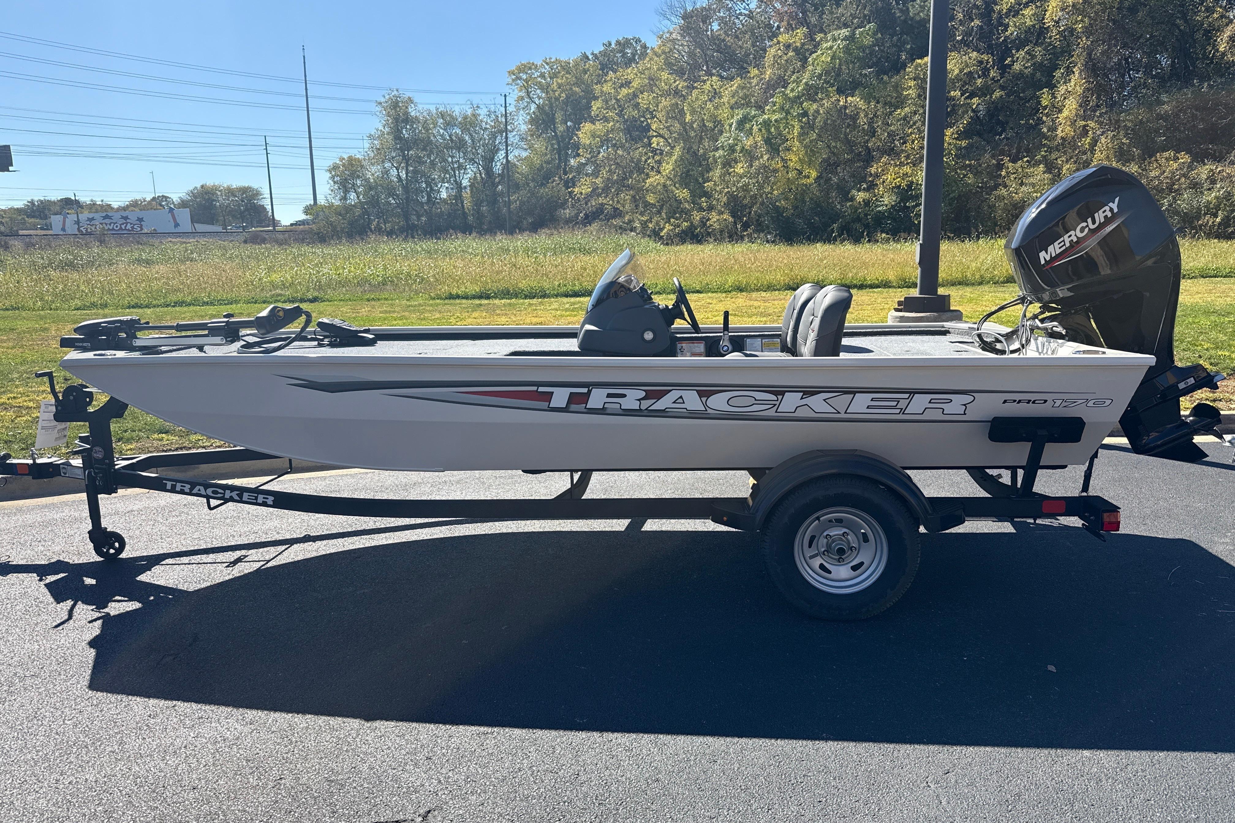 The TRACKER® PRO 170 is expertly crafted to offer a perfect balance of spacious fishing area, easy towing and storage, and a range of tournament-ready features. Equipped with a Mercury® outboard motor, Minn Kota® Edge trolling motor, Garmin® Striker 4 color fishfinder, aerated livewell, VERSATRACK® accessory-mounting channels, and more, this boat is packed with essential tools for a successful day on the water. Built with meticulous attention to quality, each PRO 170 provides peace of mind and durability, ensuring lasting memories. Its vibrant, durable finish is achieved through our next-generation DIAMOND COAT 3.0 paint process, which maintains its brilliance with minimal maintenance. From its thoughtful design to its comprehensive features, the PRO 170 exemplifies TRACKER’s dedication to equipping anglers for success. Cast with confidence—your adventure begins with the TRACKER® PRO 170 beneath you.