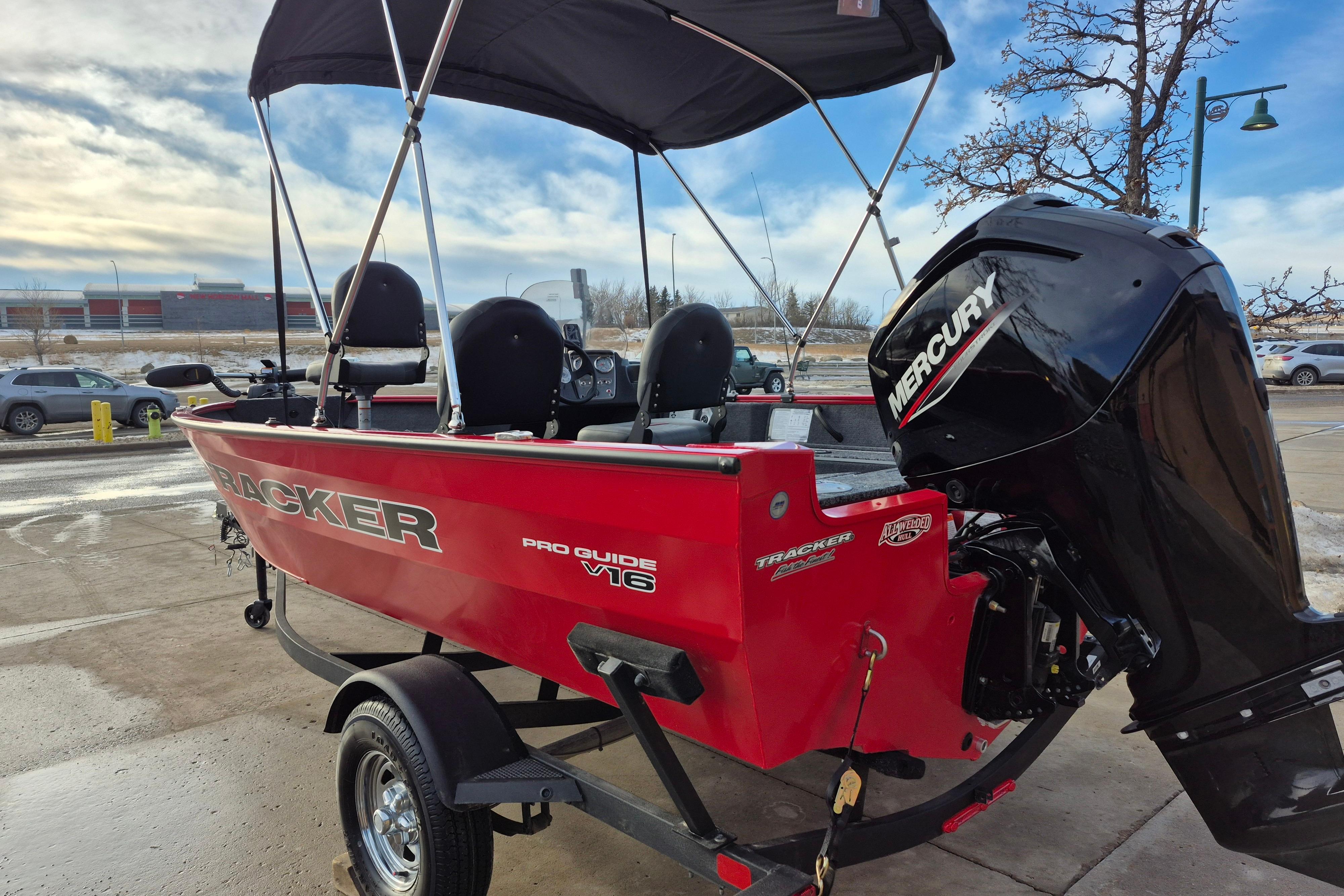 The TRACKER PRO GUIDE V-16SC delivers strength, space, and storage with huge value. The finely tuned hull is designed to slice through chop and track easily, making trolling a breeze. The front and rear deck are made with casting in mind and both are covered in a premium non-slip marine-grade vinyl for easy clean up. Storage compartments are tucked in every corner of the V-16SC to keep all your gear both secure and close at hand. Underneath is a custom-matched trailer designed just for the hull that rides on it. The PRO GUIDE V-16SC isn't just a boat; it's the key to maximizing your next great fishing adventure.