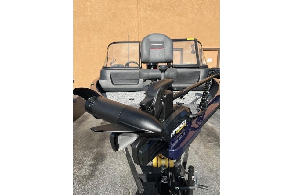 The TRACKER PRO GUIDE V-16 WT packs a punch in a compact, Deep V hull design. The walk-thru windshield shields you from the elements, ensuring comfort in all conditions. With three fishing seats and six customizable setups, the PRO GUIDE V-16 WT is ready for your whole crew. The Deep V hull is designed for smooth, dry performance and peak edge-to-edge stability. It has space galore, so you can haul all your gear with ease. Up front is a standard Minn Kota trolling motor with a livewell/baitwell and twin storage boxes while the console features a Garmin Striker 4 color fishfinder with a full gauge setup and smooth, reliable steering. Rounding out the package are a custom-fitted trailer and reliable, economical four stroke Mercury power.