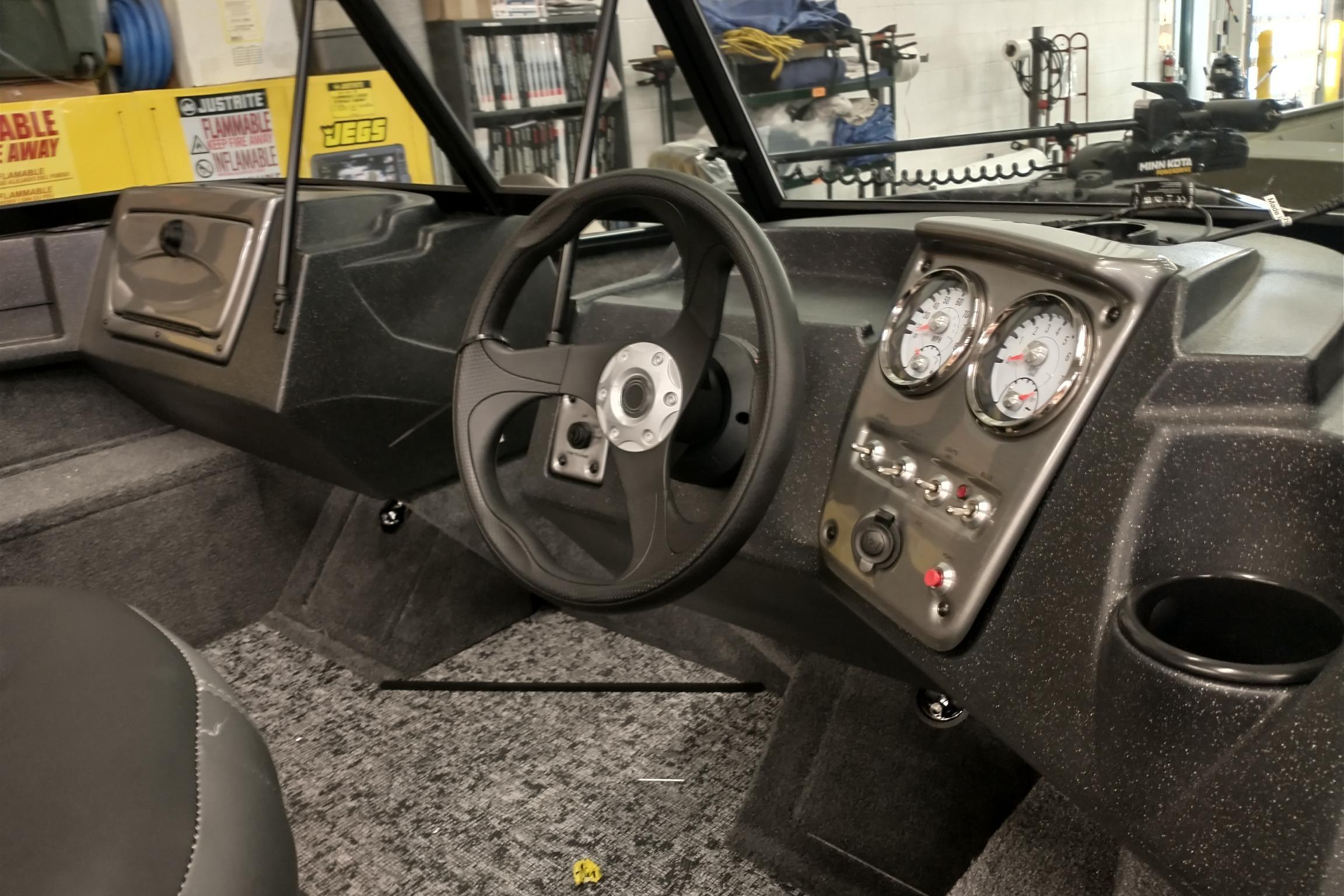 • Forward-console tackle box storage w/bungee cord