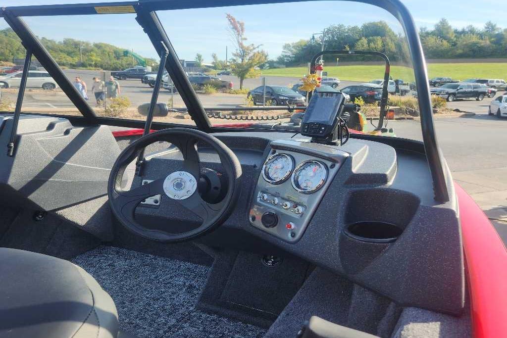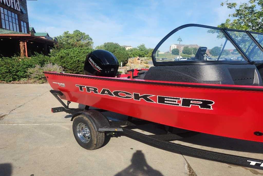 The TRACKER PRO GUIDE V-16 WT packs a punch in a compact, Deep V hull design. The walk-thru windshield shields you from the elements, ensuring comfort in all conditions. With three fishing seats and six customizable setups, the PRO GUIDE V-16 WT is ready for your whole crew. The Deep V hull is designed for smooth, dry performance and peak edge-to-edge stability. It has space galore, so you can haul all your gear with ease. Up front is a standard Minn Kota trolling motor with a livewell/baitwell and twin storage boxes while the console features a Garmin Striker 4 color fishfinder with a full gauge setup and smooth, reliable steering. Rounding out the package are a custom-fitted trailer and reliable, economical four stroke Mercury power.
