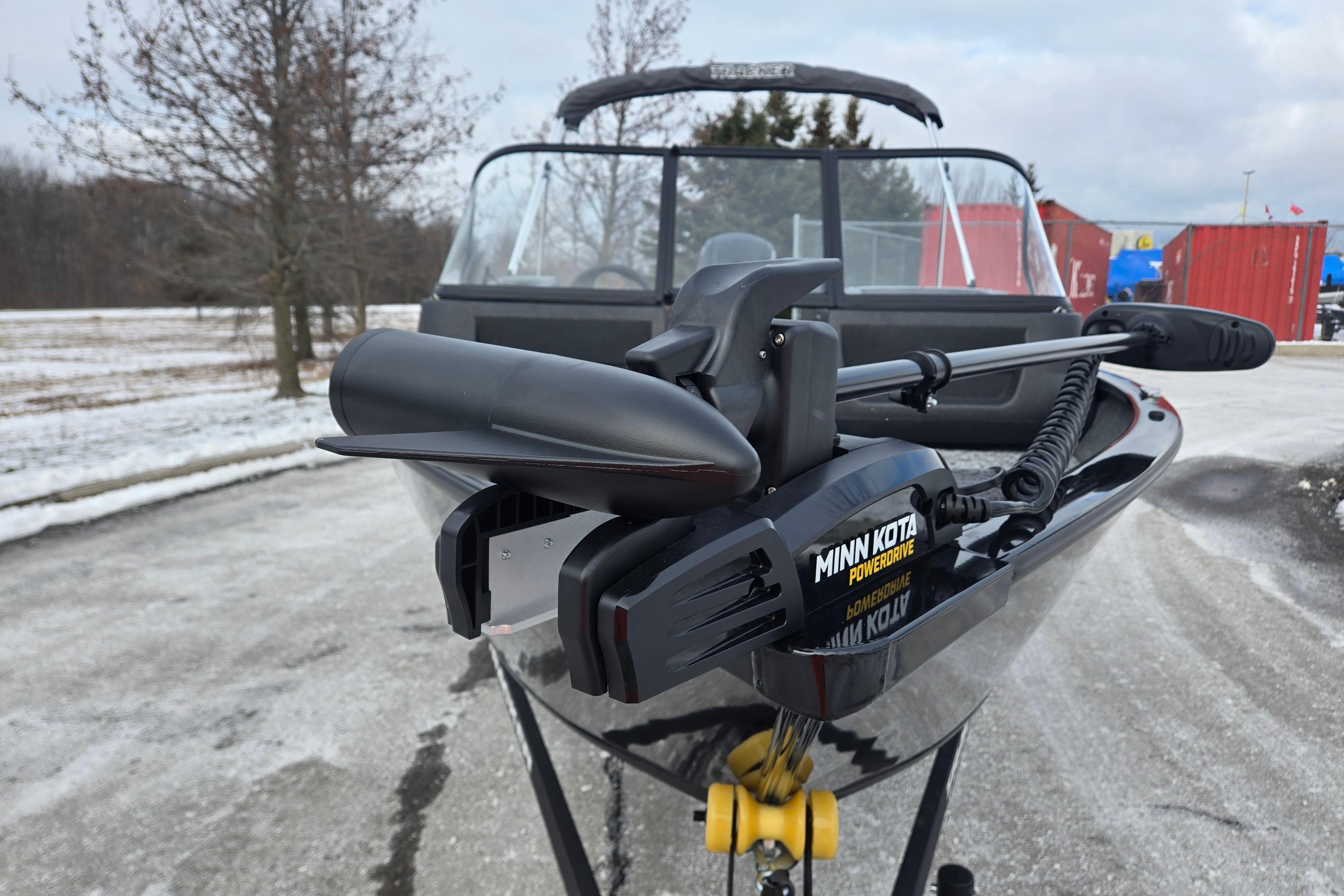 The TRACKER PRO GUIDE V-16 WT packs a punch in a compact, Deep V hull design. The walk-thru windshield shields you from the elements, ensuring comfort in all conditions. With three fishing seats and six customizable setups, the PRO GUIDE V-16 WT is ready for your whole crew. The Deep V hull is designed for smooth, dry performance and peak edge-to-edge stability. It has space galore, so you can haul all your gear with ease. Up front is a standard Minn Kota trolling motor with a livewell/baitwell and twin storage boxes while the console features a Garmin Striker 4 color fishfinder with a full gauge setup and smooth, reliable steering. Rounding out the package are a custom-fitted trailer and reliable, economical four stroke Mercury power.