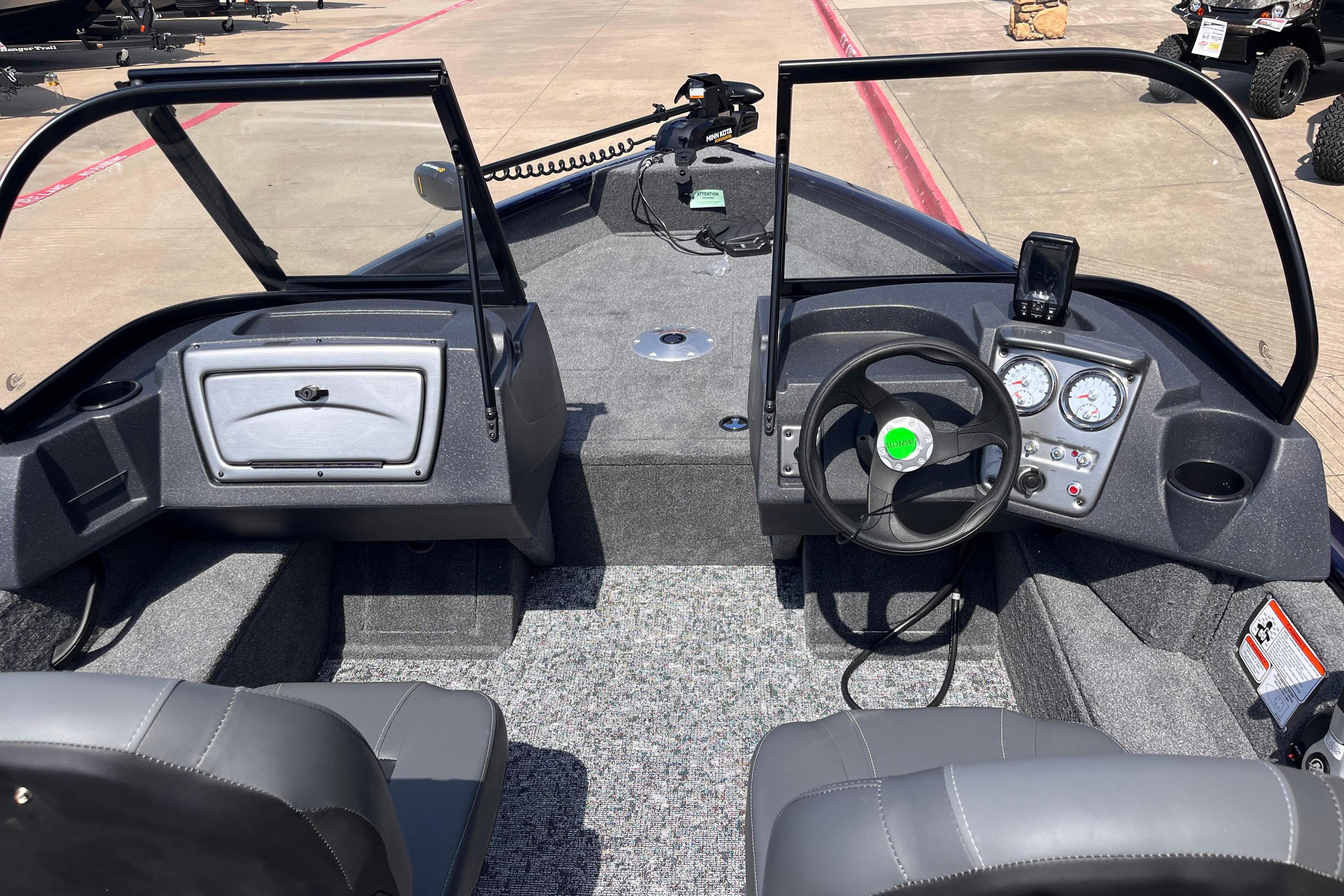 The TRACKER PRO GUIDE V-16 WT packs a punch in a compact, Deep V hull design. The walk-thru windshield shields you from the elements, ensuring comfort in all conditions. With three fishing seats and six customizable setups, the PRO GUIDE V-16 WT is ready for your whole crew. The Deep V hull is designed for smooth, dry performance and peak edge-to-edge stability. It has space galore, so you can haul all your gear with ease. Up front is a standard Minn Kota trolling motor with a livewell/baitwell and twin storage boxes while the console features a Garmin Striker 4 color fishfinder with a full gauge setup and smooth, reliable steering. Rounding out the package are a custom-fitted trailer and reliable, economical four stroke Mercury power.