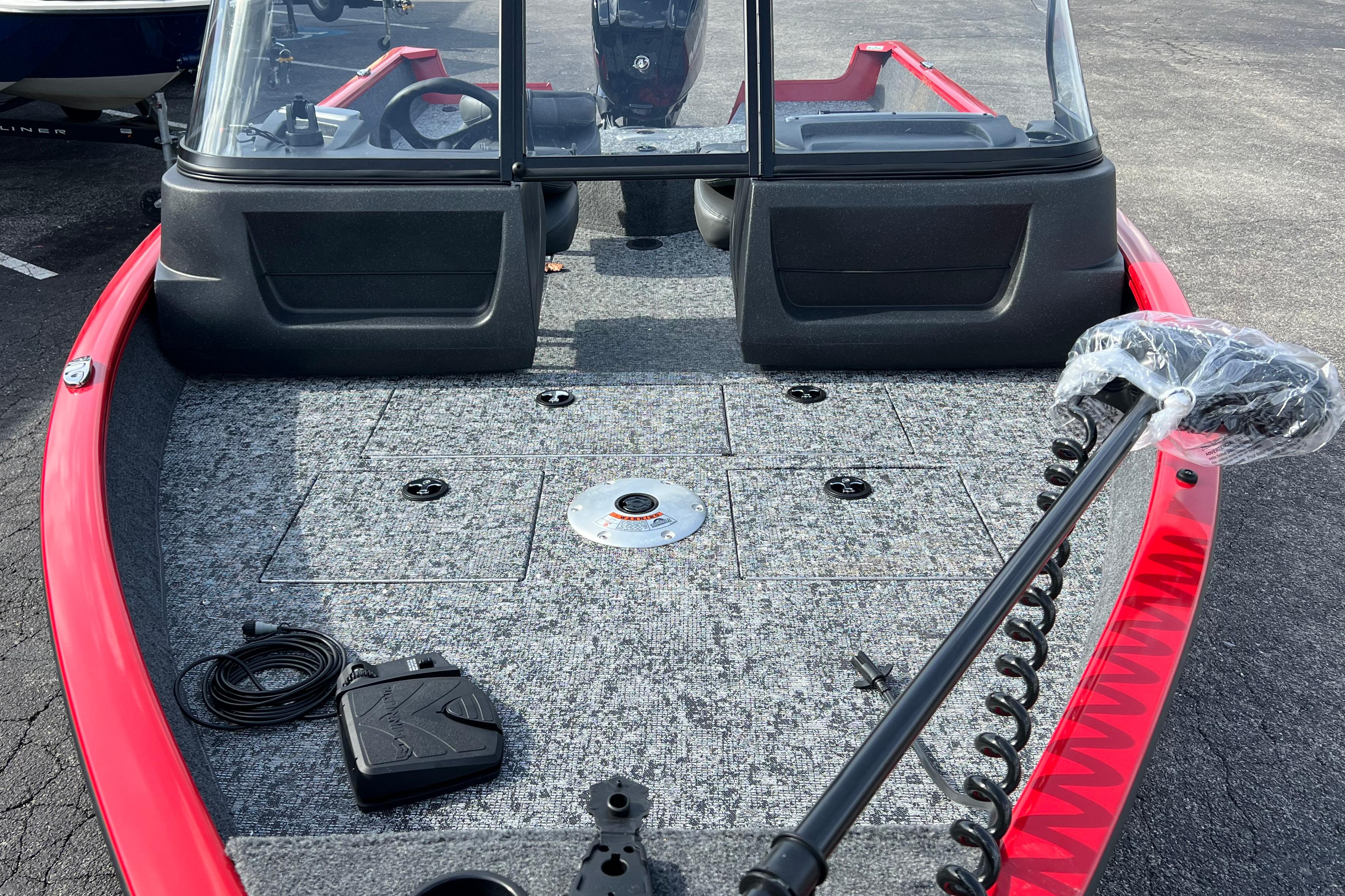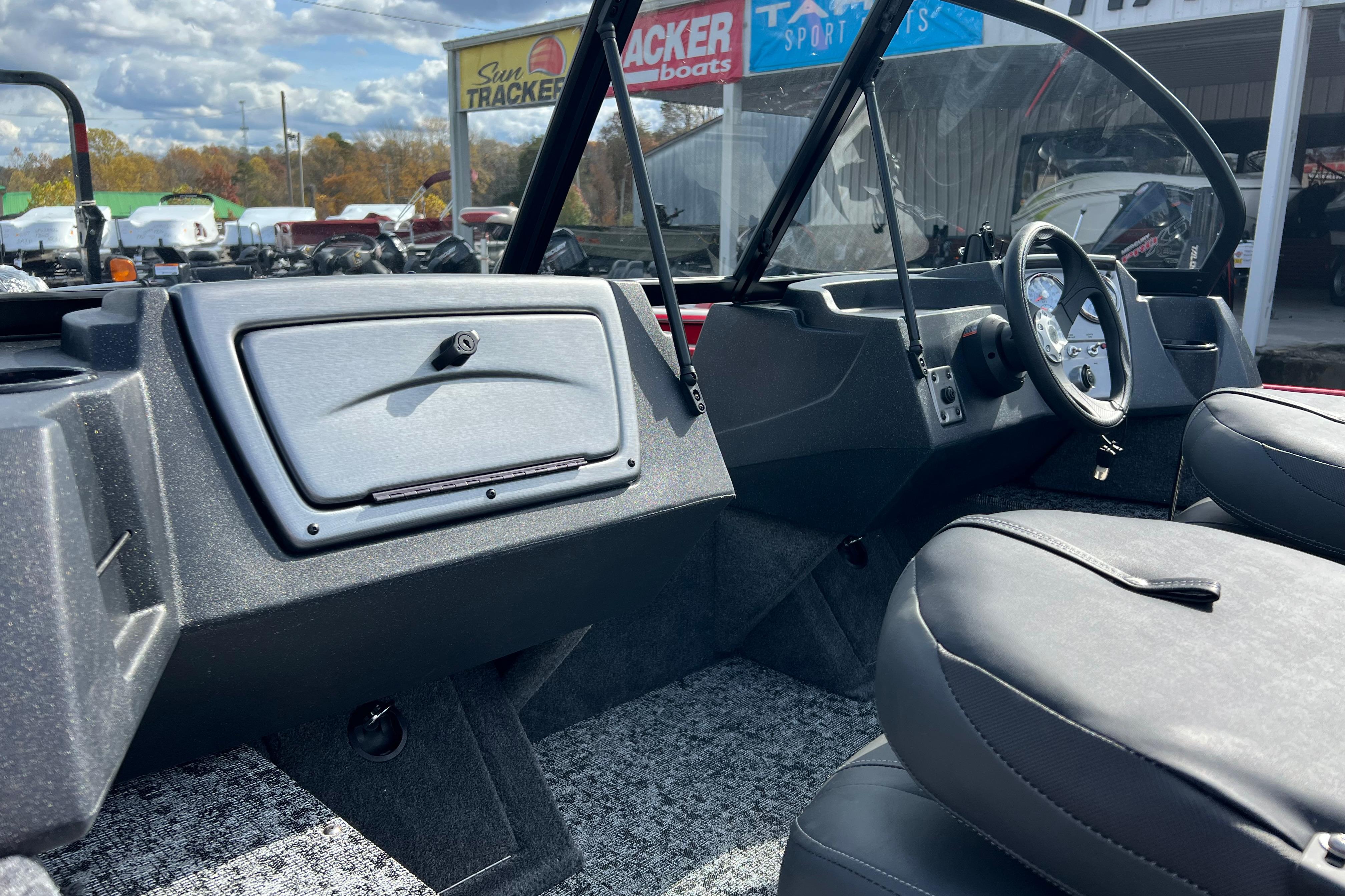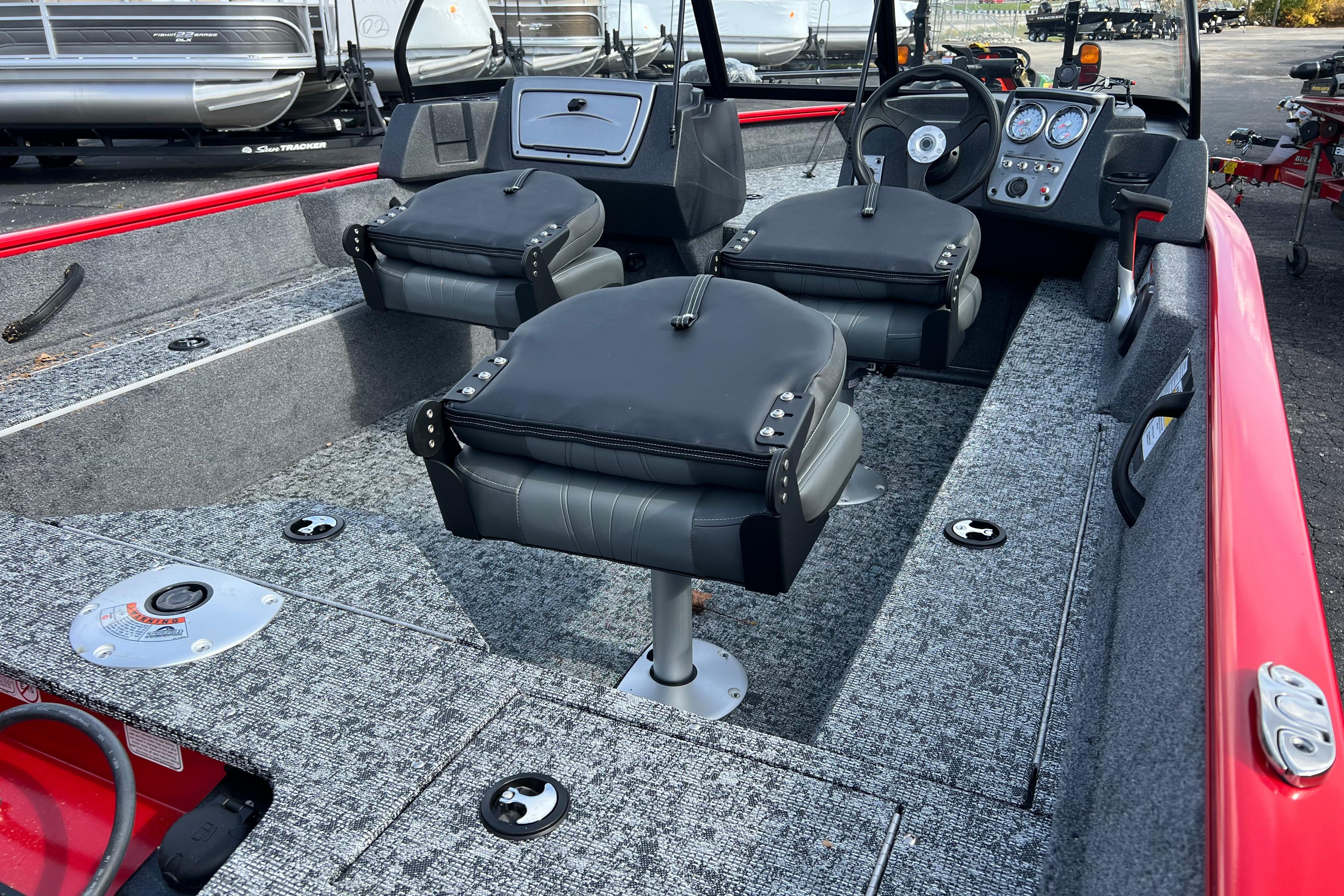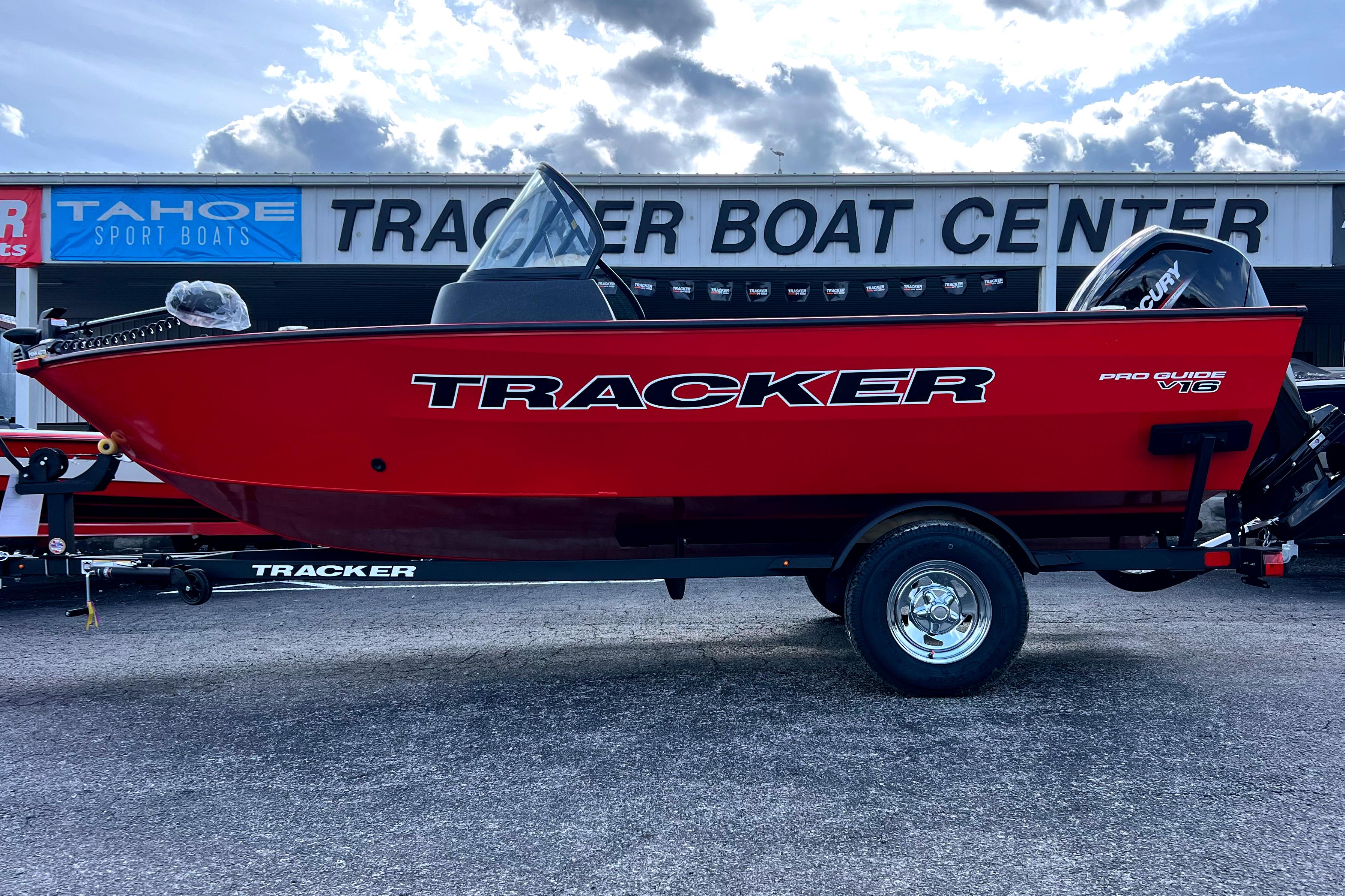The TRACKER PRO GUIDE V-16 WT packs a punch in a compact, Deep V hull design. The walk-thru windshield shields you from the elements, ensuring comfort in all conditions. With three fishing seats and six customizable setups, the PRO GUIDE V-16 WT is ready for your whole crew. The Deep V hull is designed for smooth, dry performance and peak edge-to-edge stability. It has space galore, so you can haul all your gear with ease. Up front is a standard Minn Kota trolling motor with a livewell/baitwell and twin storage boxes while the console features a Garmin Striker 4 color fishfinder with a full gauge setup and smooth, reliable steering. Rounding out the package are a custom-fitted trailer and reliable, economical four stroke Mercury power.
