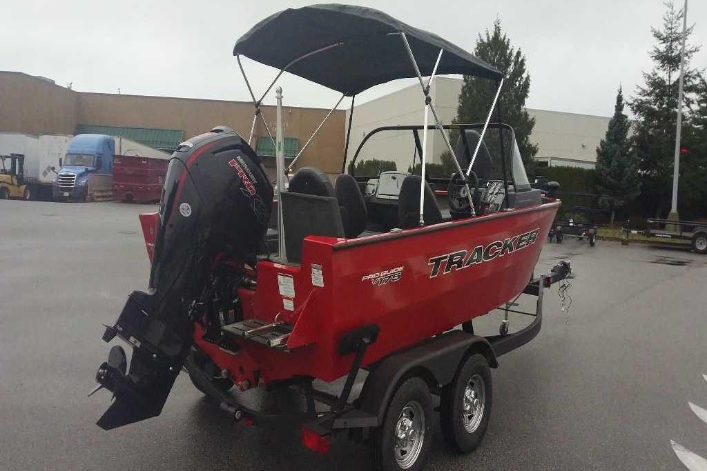 Whether the day calls for fishing, tubing, skiing, cruising or all of the above, the TRACKER PRO GUIDE™ V-175 Combo delivers the versatility and amenities to make it happen. Measuring 17’ 7” in length and 8’ 1” in width, the V-175 Combo has exceptional stability for cruising and casting. Storage is perfect for rods and tackle or watersports gear. A growling Mercury® FourStroke engine has the pep to knock down rollers and pop up a wakeboarder with ease. The back deck serves are a solid casting platform when down, and when up adds a pair of seats covered in premium marine-grade vinyl. The console is shrouded by a wraparound walk-thru windshield and carries a full complement of gauges, a fishfinder, and easy, responsive steering. Whether you're a seasoned angler or a family looking for a versatile watercraft, the TRACKER PRO GUIDE™ V-175 Combo delivers on both performance and comfort, making it a popular choice among all water lovers.