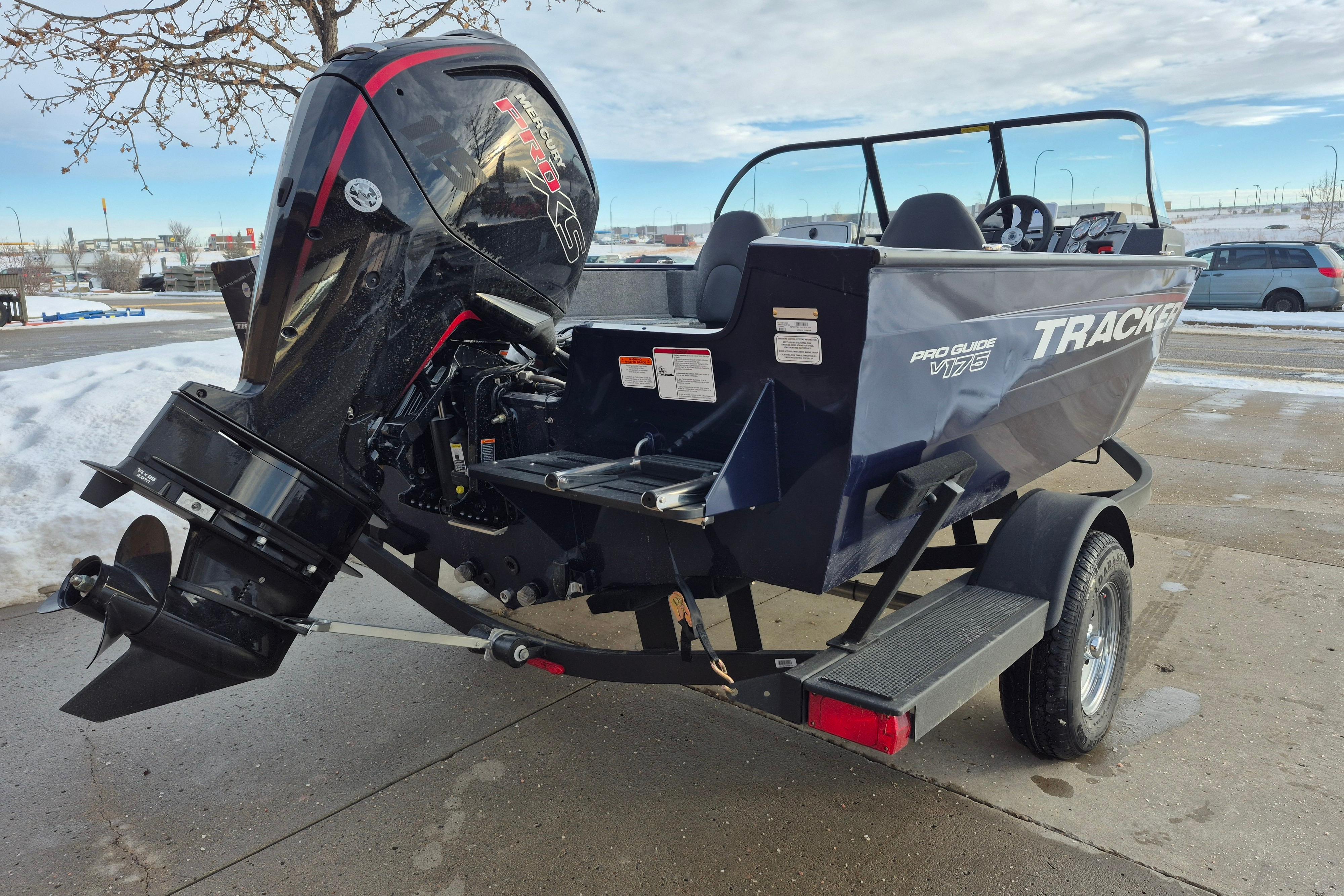 Whether the day calls for fishing, tubing, skiing, cruising or all of the above, the TRACKER PRO GUIDE™ V-175 Combo delivers the versatility and amenities to make it happen. Measuring 17’ 7” in length and 8’ 1” in width, the V-175 Combo has exceptional stability for cruising and casting. Storage is perfect for rods and tackle or watersports gear. A growling Mercury® FourStroke engine has the pep to knock down rollers and pop up a wakeboarder with ease. The back deck serves are a solid casting platform when down, and when up adds a pair of seats covered in premium marine-grade vinyl. The console is shrouded by a wraparound walk-thru windshield and carries a full complement of gauges, a fishfinder, and easy, responsive steering. Whether you're a seasoned angler or a family looking for a versatile watercraft, the TRACKER PRO GUIDE™ V-175 Combo delivers on both performance and comfort, making it a popular choice among all water lovers.