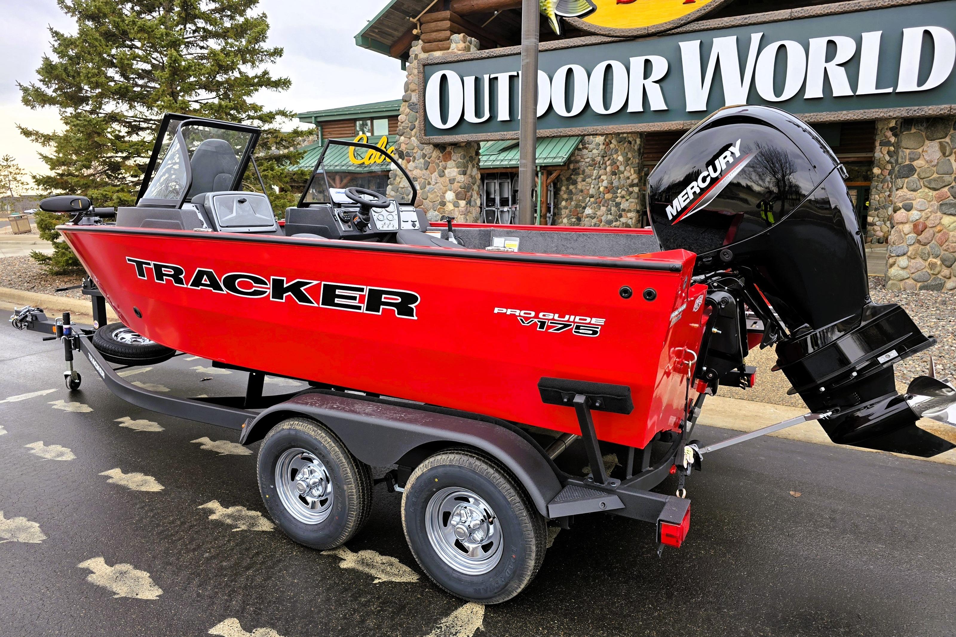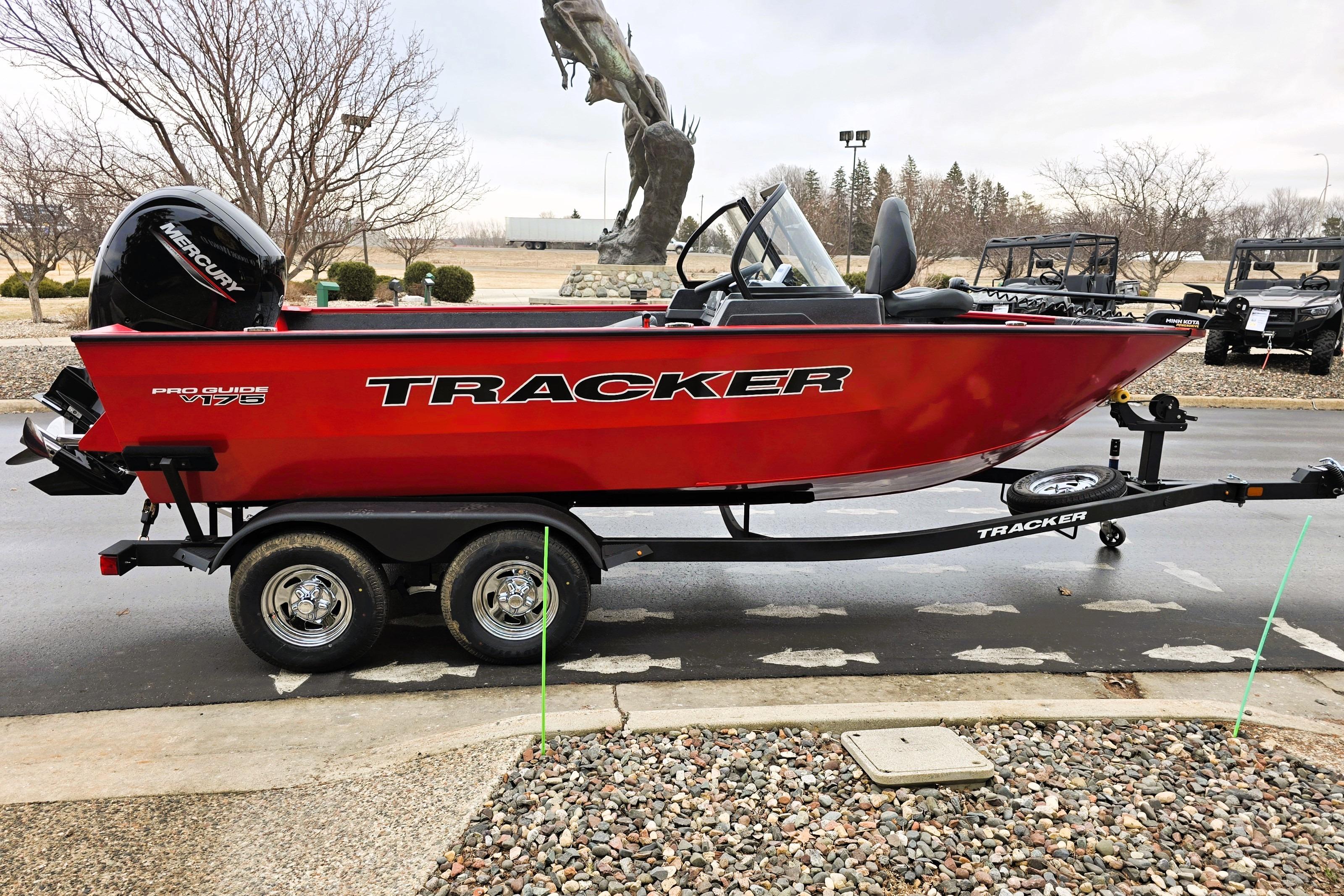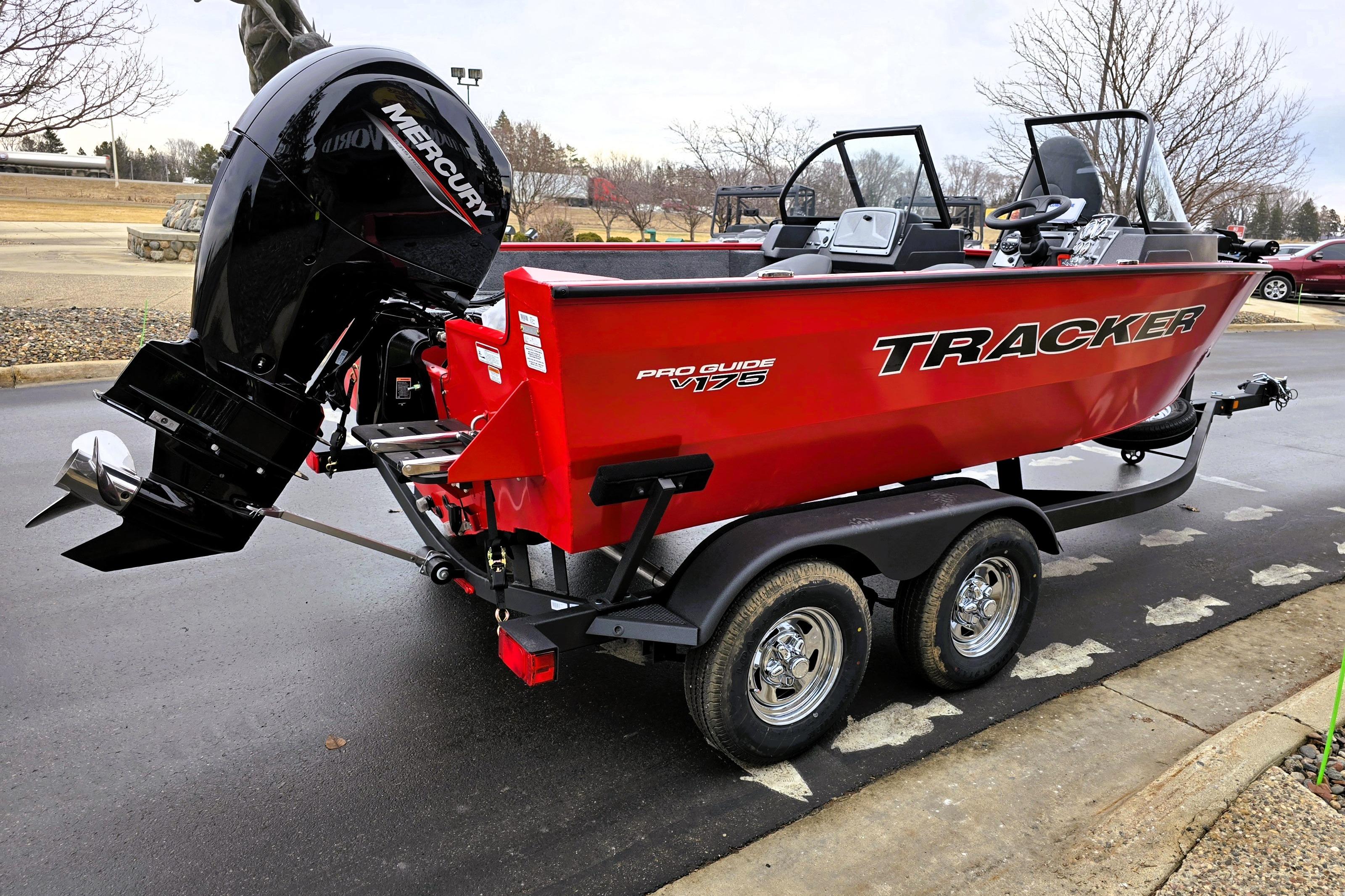 Whether the day calls for fishing, tubing, skiing, cruising or all of the above, the TRACKER PRO GUIDE™ V-175 Combo delivers the versatility and amenities to make it happen. Measuring 17’ 7” in length and 8’ 1” in width, the V-175 Combo has exceptional stability for cruising and casting. Storage is perfect for rods and tackle or watersports gear. A growling Mercury® FourStroke engine has the pep to knock down rollers and pop up a wakeboarder with ease. The back deck serves are a solid casting platform when down, and when up adds a pair of seats covered in premium marine-grade vinyl. The console is shrouded by a wraparound walk-thru windshield and carries a full complement of gauges, a fishfinder, and easy, responsive steering. Whether you're a seasoned angler or a family looking for a versatile watercraft, the TRACKER PRO GUIDE™ V-175 Combo delivers on both performance and comfort, making it a popular choice among all water lovers.