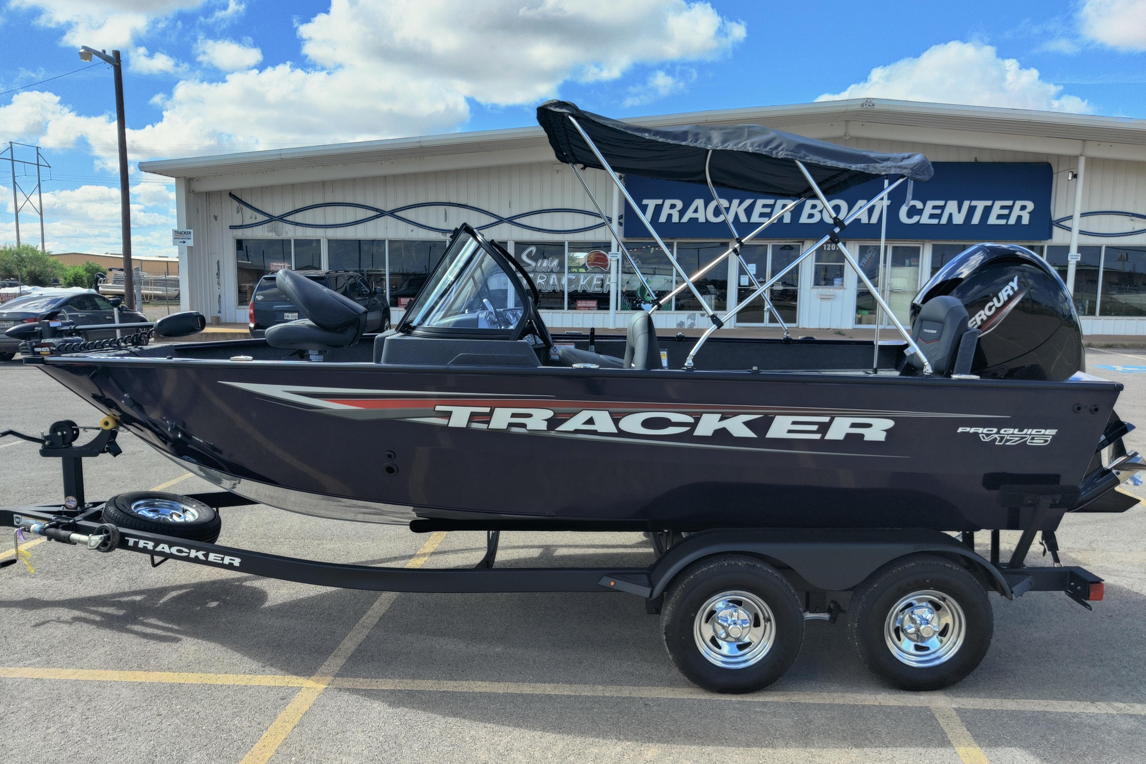 Whether the day calls for fishing, tubing, skiing, cruising or all of the above, the TRACKER PRO GUIDE™ V-175 Combo delivers the versatility and amenities to make it happen. Measuring 17’ 7” in length and 8’ 1” in width, the V-175 Combo has exceptional stability for cruising and casting. Storage is perfect for rods and tackle or watersports gear. A growling Mercury® FourStroke engine has the pep to knock down rollers and pop up a wakeboarder with ease. The back deck serves are a solid casting platform when down, and when up adds a pair of seats covered in premium marine-grade vinyl. The console is shrouded by a wraparound walk-thru windshield and carries a full complement of gauges, a fishfinder, and easy, responsive steering. Whether you're a seasoned angler or a family looking for a versatile watercraft, the TRACKER PRO GUIDE™ V-175 Combo delivers on both performance and comfort, making it a popular choice among all water lovers.