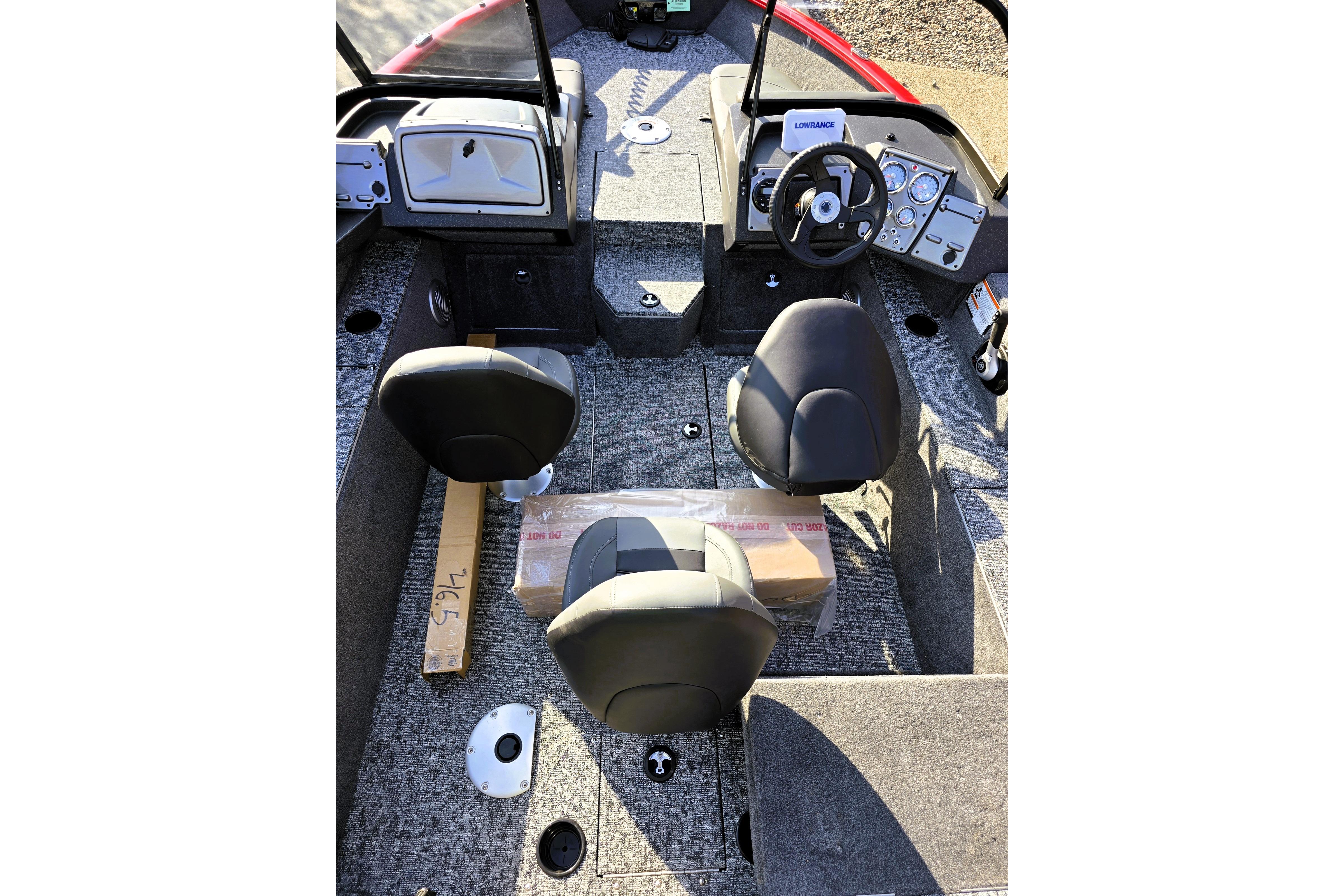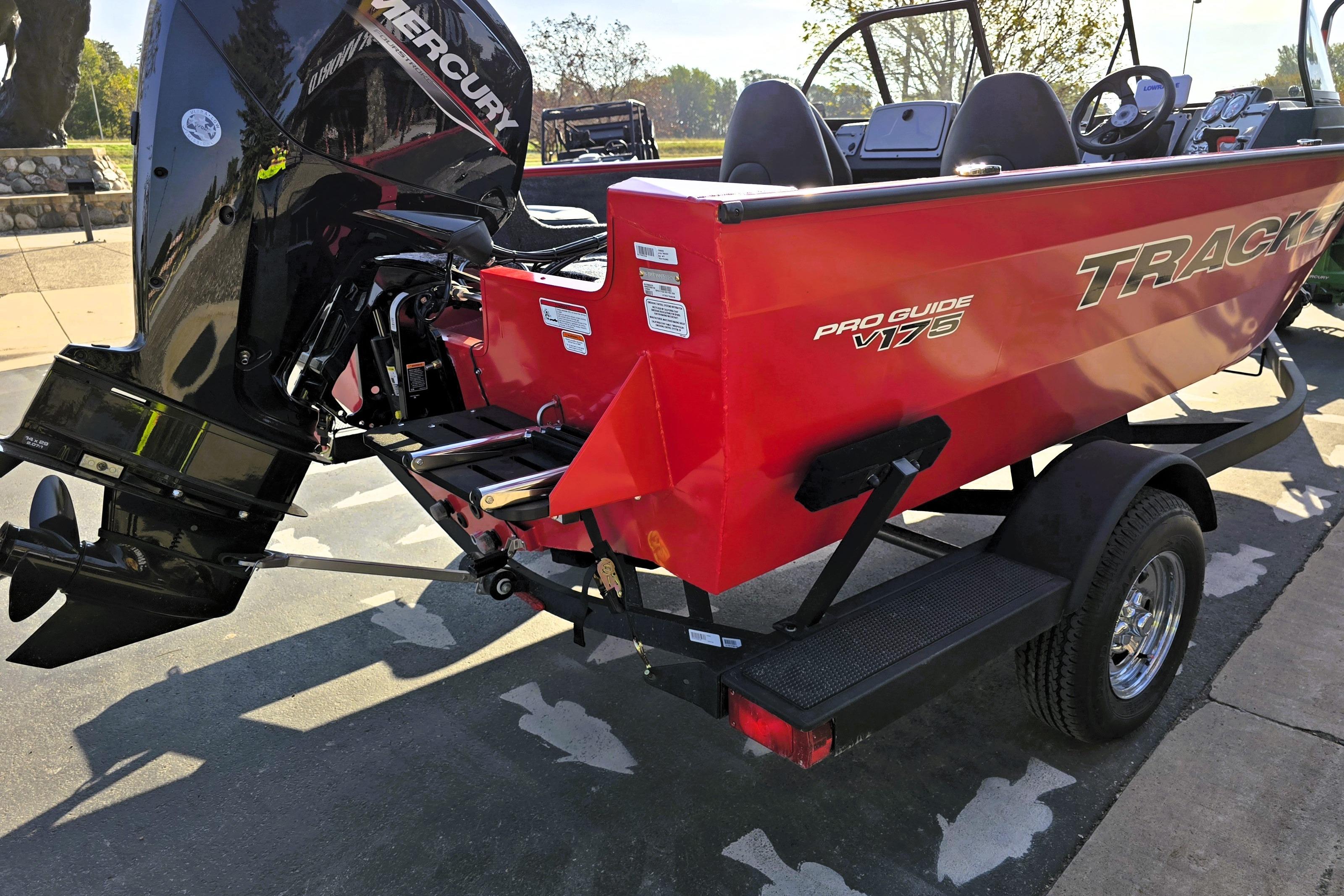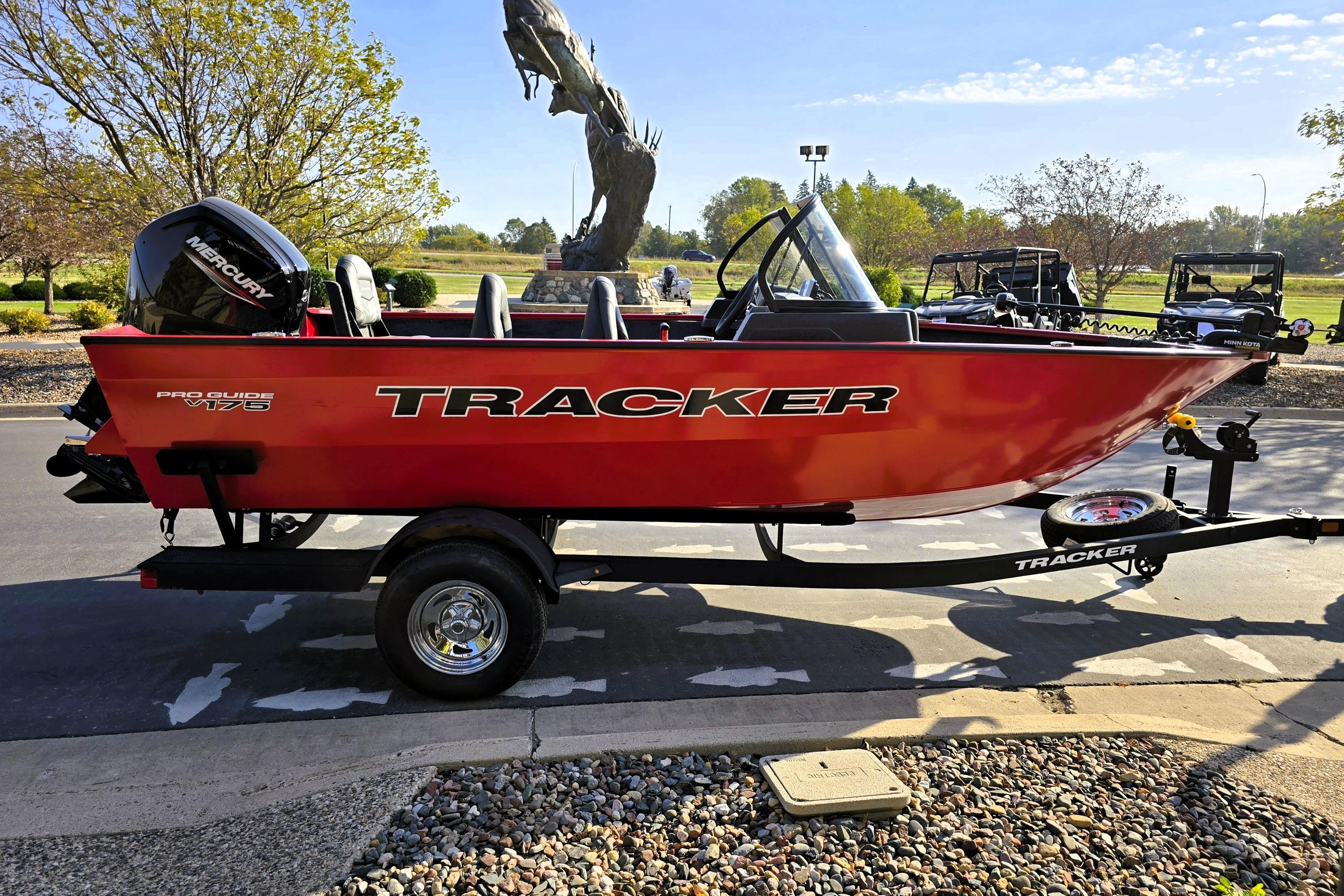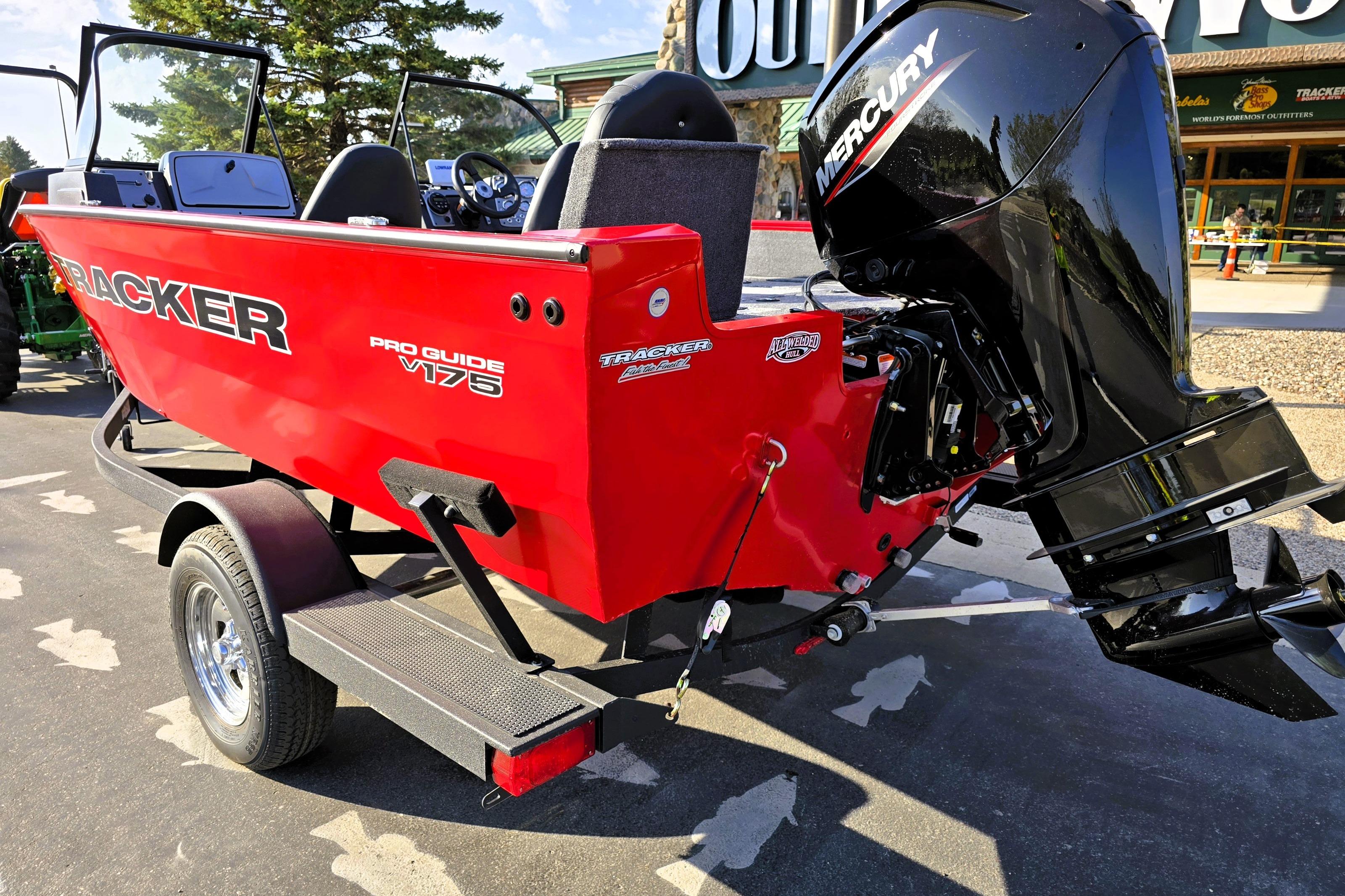 Whether the day calls for fishing, tubing, skiing, cruising or all of the above, the TRACKER PRO GUIDE™ V-175 Combo delivers the versatility and amenities to make it happen. Measuring 17’ 7” in length and 8’ 1” in width, the V-175 Combo has exceptional stability for cruising and casting. Storage is perfect for rods and tackle or watersports gear. A growling Mercury® FourStroke engine has the pep to knock down rollers and pop up a wakeboarder with ease. The back deck serves are a solid casting platform when down, and when up adds a pair of seats covered in premium marine-grade vinyl. The console is shrouded by a wraparound walk-thru windshield and carries a full complement of gauges, a fishfinder, and easy, responsive steering. Whether you're a seasoned angler or a family looking for a versatile watercraft, the TRACKER PRO GUIDE™ V-175 Combo delivers on both performance and comfort, making it a popular choice among all water lovers.