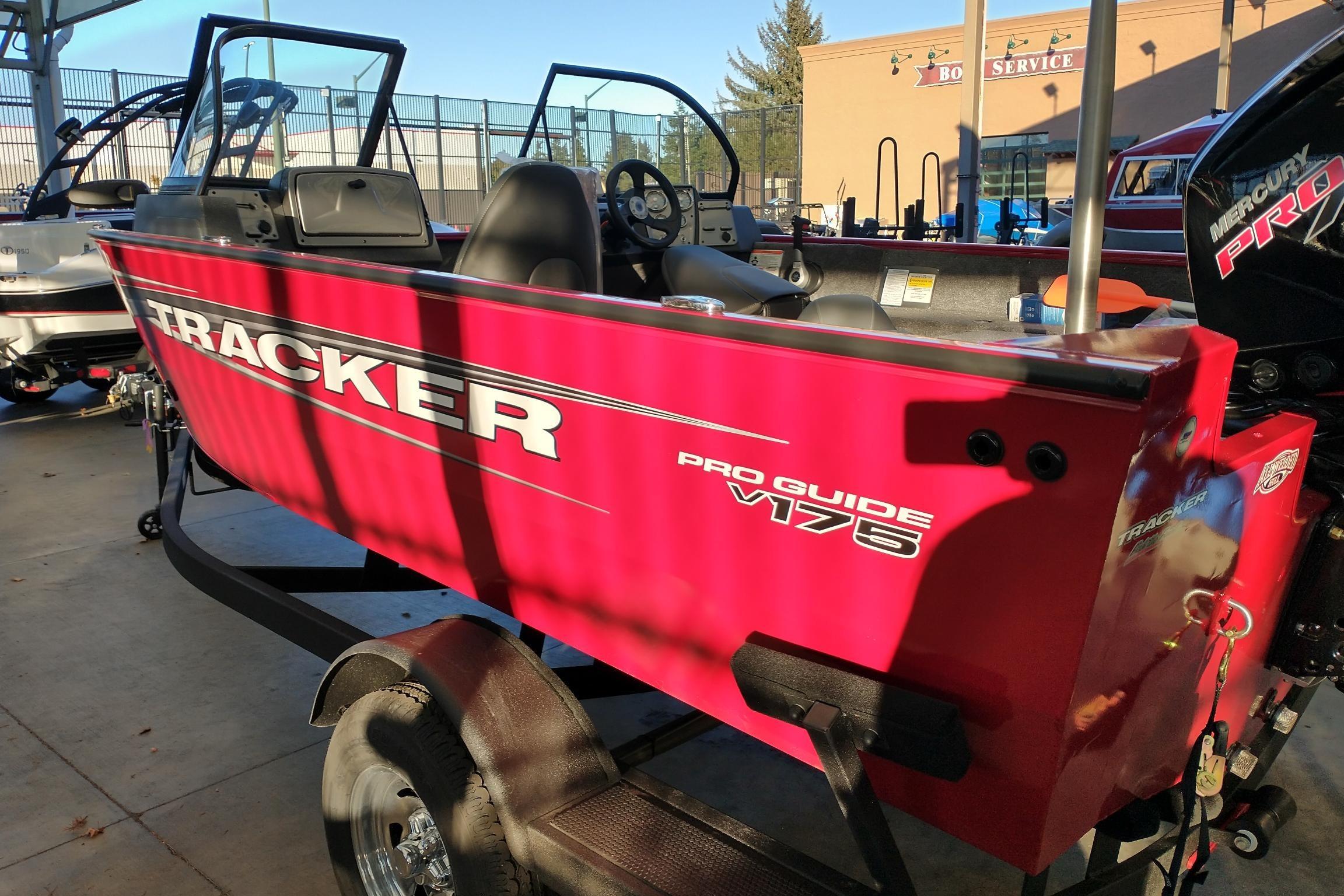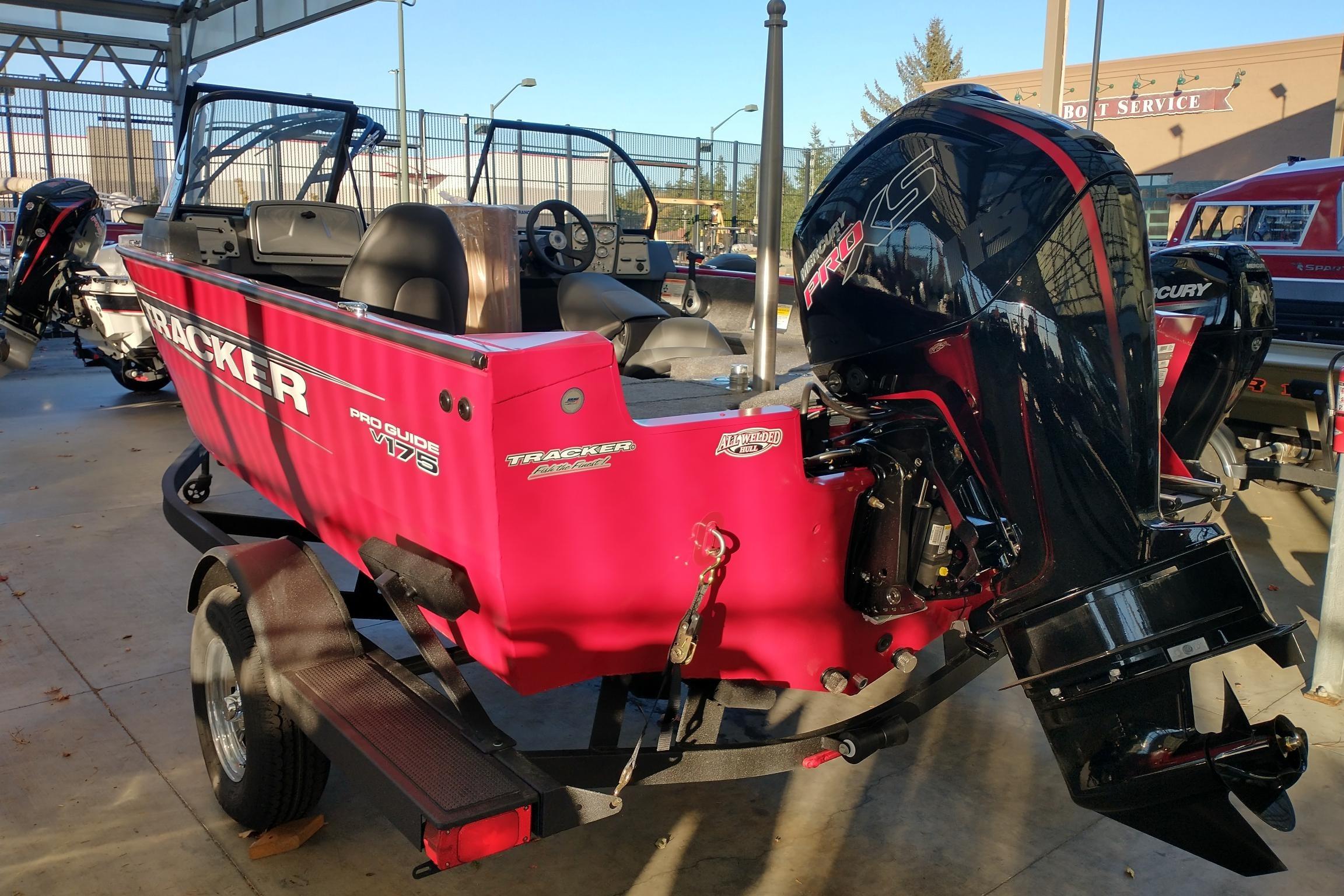 Whether the day calls for fishing, tubing, skiing, cruising or all of the above, the TRACKER PRO GUIDE™ V-175 Combo delivers the versatility and amenities to make it happen. Measuring 17’ 7” in length and 8’ 1” in width, the V-175 Combo has exceptional stability for cruising and casting. Storage is perfect for rods and tackle or watersports gear. A growling Mercury® FourStroke engine has the pep to knock down rollers and pop up a wakeboarder with ease. The back deck serves are a solid casting platform when down, and when up adds a pair of seats covered in premium marine-grade vinyl. The console is shrouded by a wraparound walk-thru windshield and carries a full complement of gauges, a fishfinder, and easy, responsive steering. Whether you're a seasoned angler or a family looking for a versatile watercraft, the TRACKER PRO GUIDE™ V-175 Combo delivers on both performance and comfort, making it a popular choice among all water lovers.