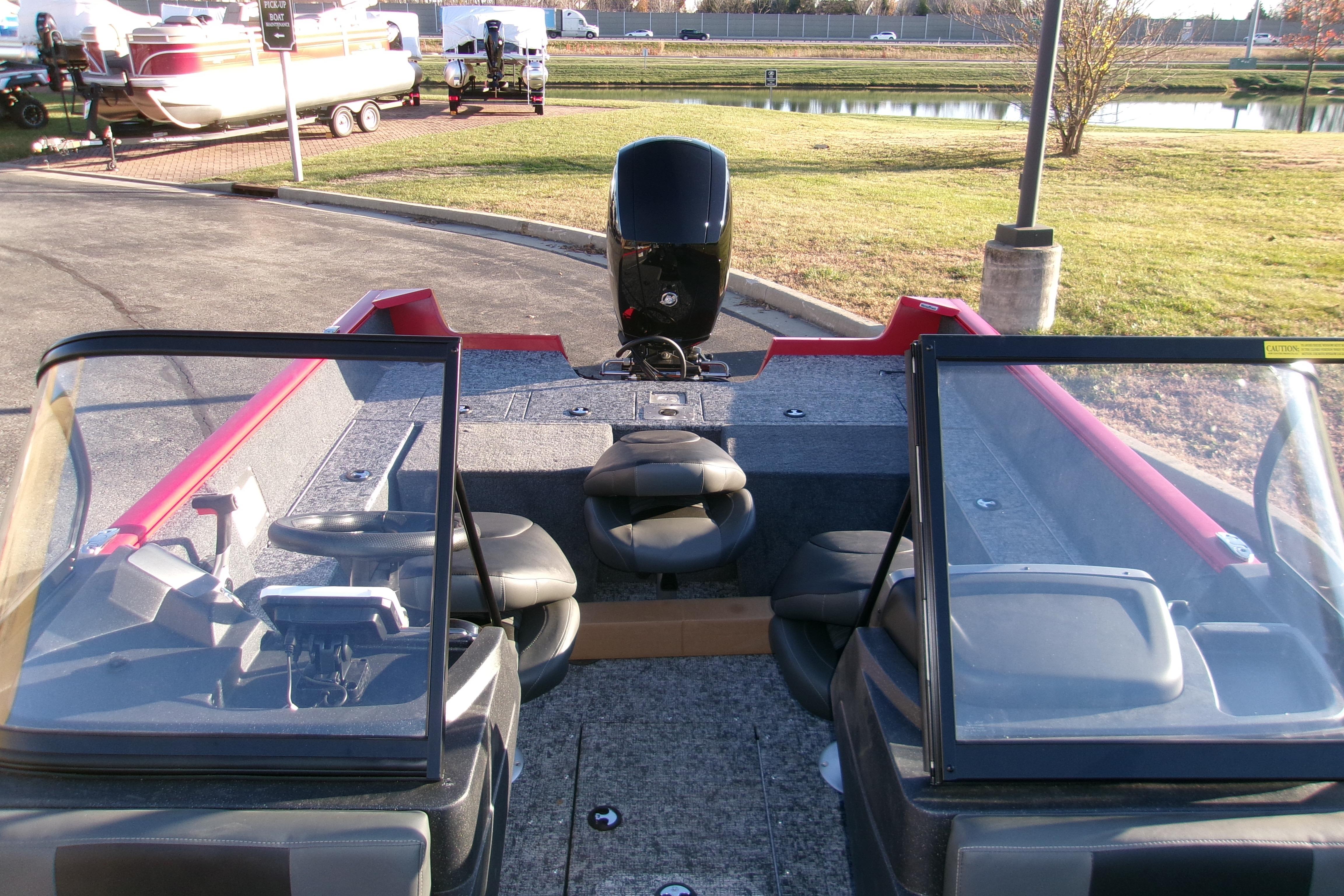 • Port & starboard rotomolded consoles w/tempered safety-glass walk-thru windshields & hatch