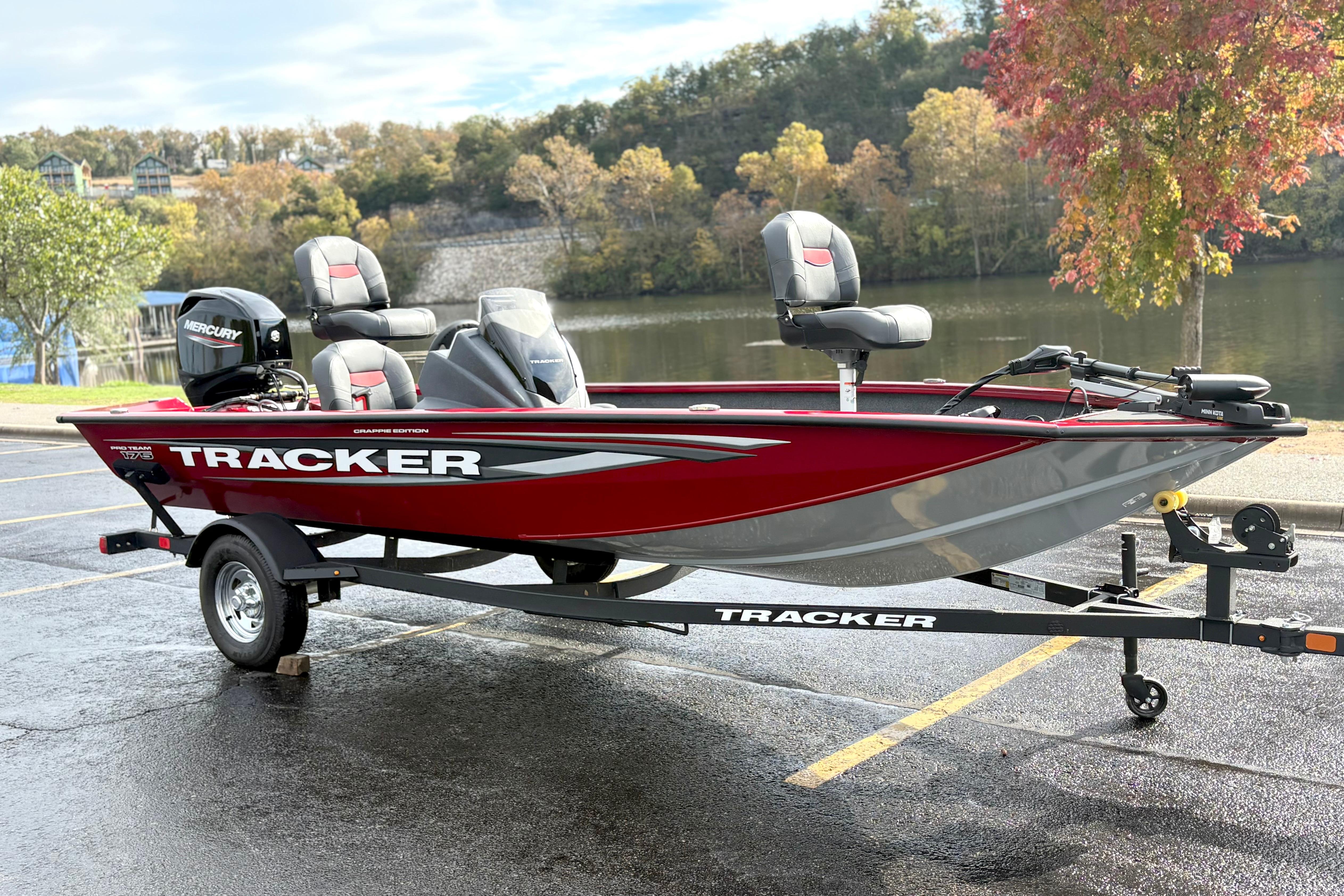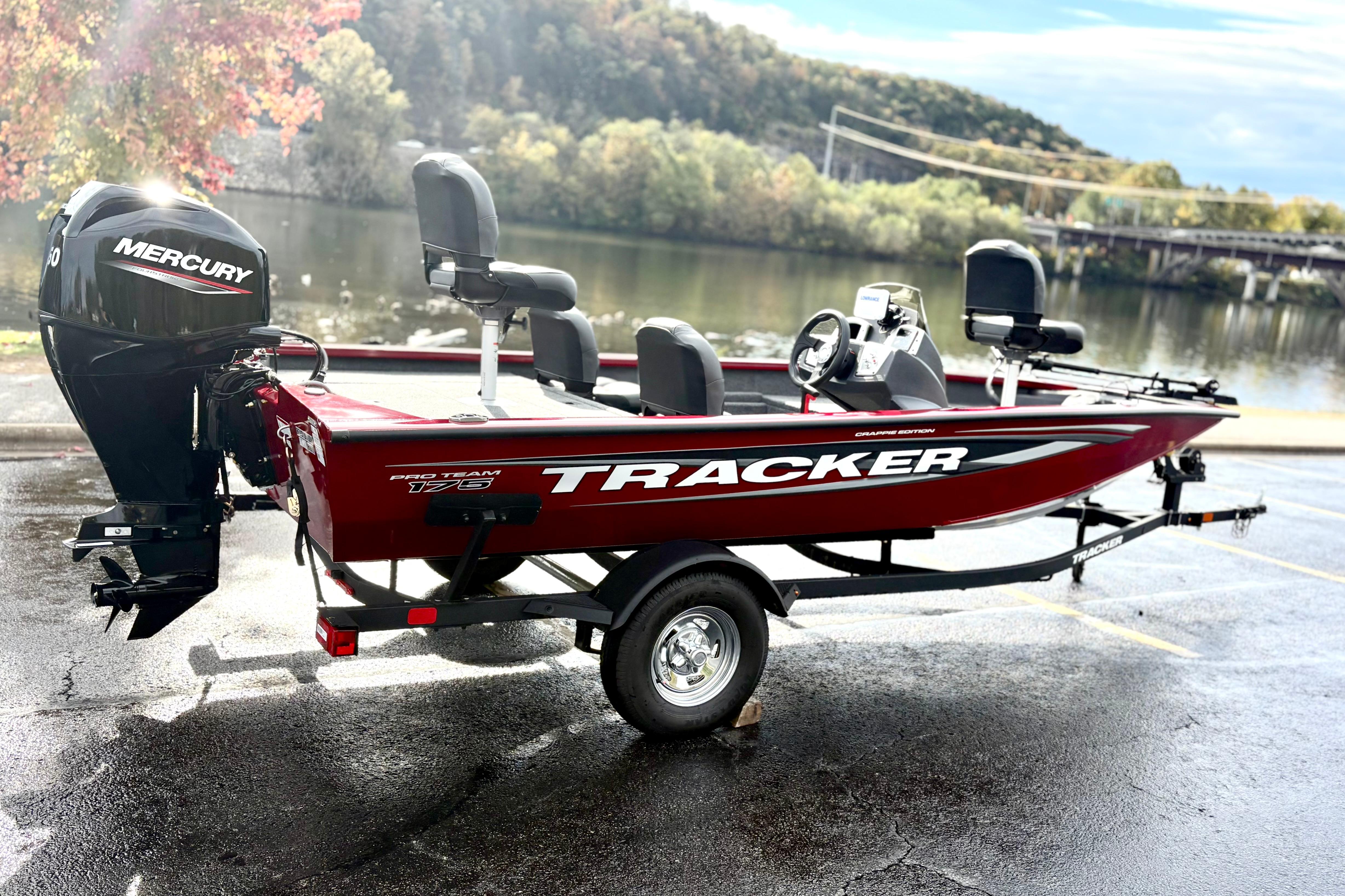 TRACKER PRO TEAM 175 Crappie Edition® is designed for anglers who pursue a wide variety of fish species, including crappie, bass, walleye, pike, and more. Its versatile features include a touchscreen gauge display, three across bow seat positions, dual livewells, and an ultra-stable front deck—enhancing both fishability and convenience. Powered by a smooth and dependable Mercury® outboard, the PRO TEAM 175 also comes equipped with a Minn Kota® Edge trolling motor and a Lowrance® HOOK Reveal 5 color fishfinder as standard. Like all TRACKER® boats, it is supported by the TRACKER PROMISE, which provides the best factory warranty in aluminum boats. Elevate your fishing experience with the TRACKER PRO TEAM 175 Crappie Edition®—a perfect combination of performance, versatility, and reliability.