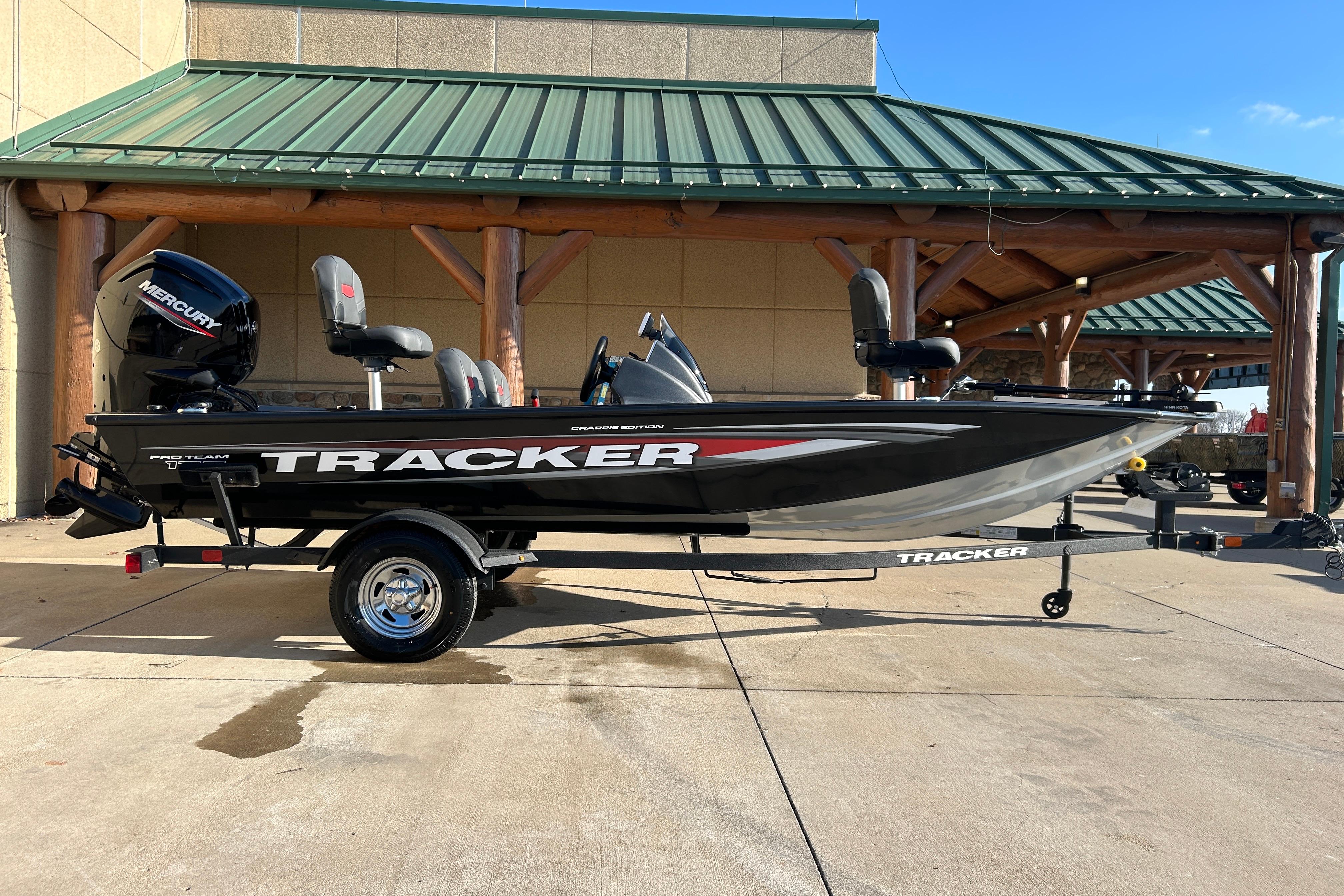 TRACKER PRO TEAM 175 Crappie Edition® is designed for anglers who pursue a wide variety of fish species, including crappie, bass, walleye, pike, and more. Its versatile features include a touchscreen gauge display, three across bow seat positions, dual livewells, and an ultra-stable front deck—enhancing both fishability and convenience. Powered by a smooth and dependable Mercury® outboard, the PRO TEAM 175 also comes equipped with a Minn Kota® Edge trolling motor and a Lowrance® HOOK Reveal 5 color fishfinder as standard. Like all TRACKER® boats, it is supported by the TRACKER PROMISE, which provides the best factory warranty in aluminum boats. Elevate your fishing experience with the TRACKER PRO TEAM 175 Crappie Edition®—a perfect combination of performance, versatility, and reliability.
