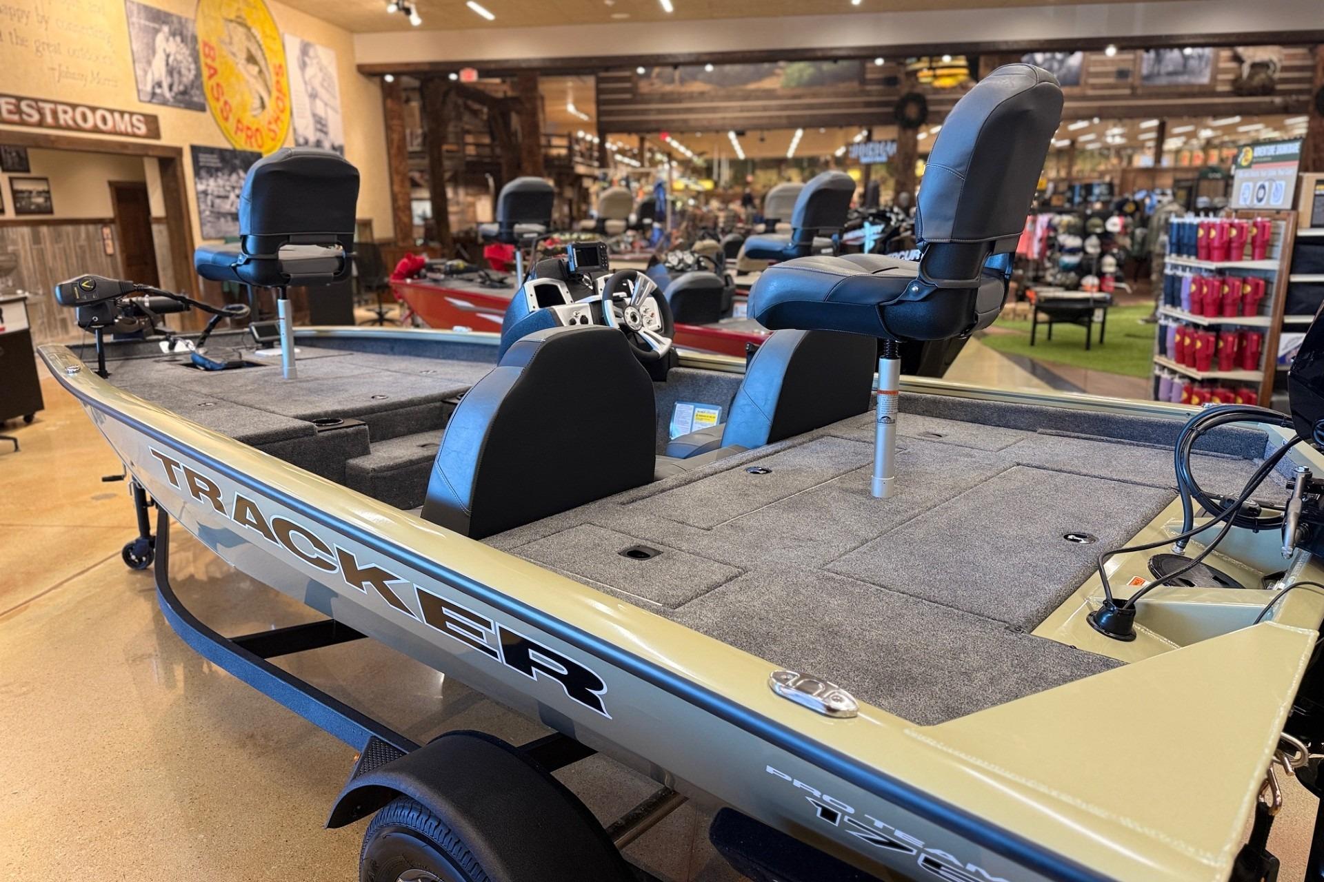 The TRACKER PRO TEAM 175® is one of the most value- and feature-packed boats in the TRACKER stable, and also one of our most popular models. All-welded construction offers superior strength that carries huge decks, abundant storage, and a 21-gallon aerated, divided, and timed livewell. Motivation comes by way of reliable, economical Mercury® power designed for years of exciting performance. The cosole features a TRACKER touchscreen display that keeps an eye on your outboard and more, a Lowrance Hook color fishfinder, and sturdy, responsive steering. With a proven legacy and untold scores of fish caught, the TRACKER PRO TEAM™ 175 delivers tournament-ready fishability and performance with unbeatable value.