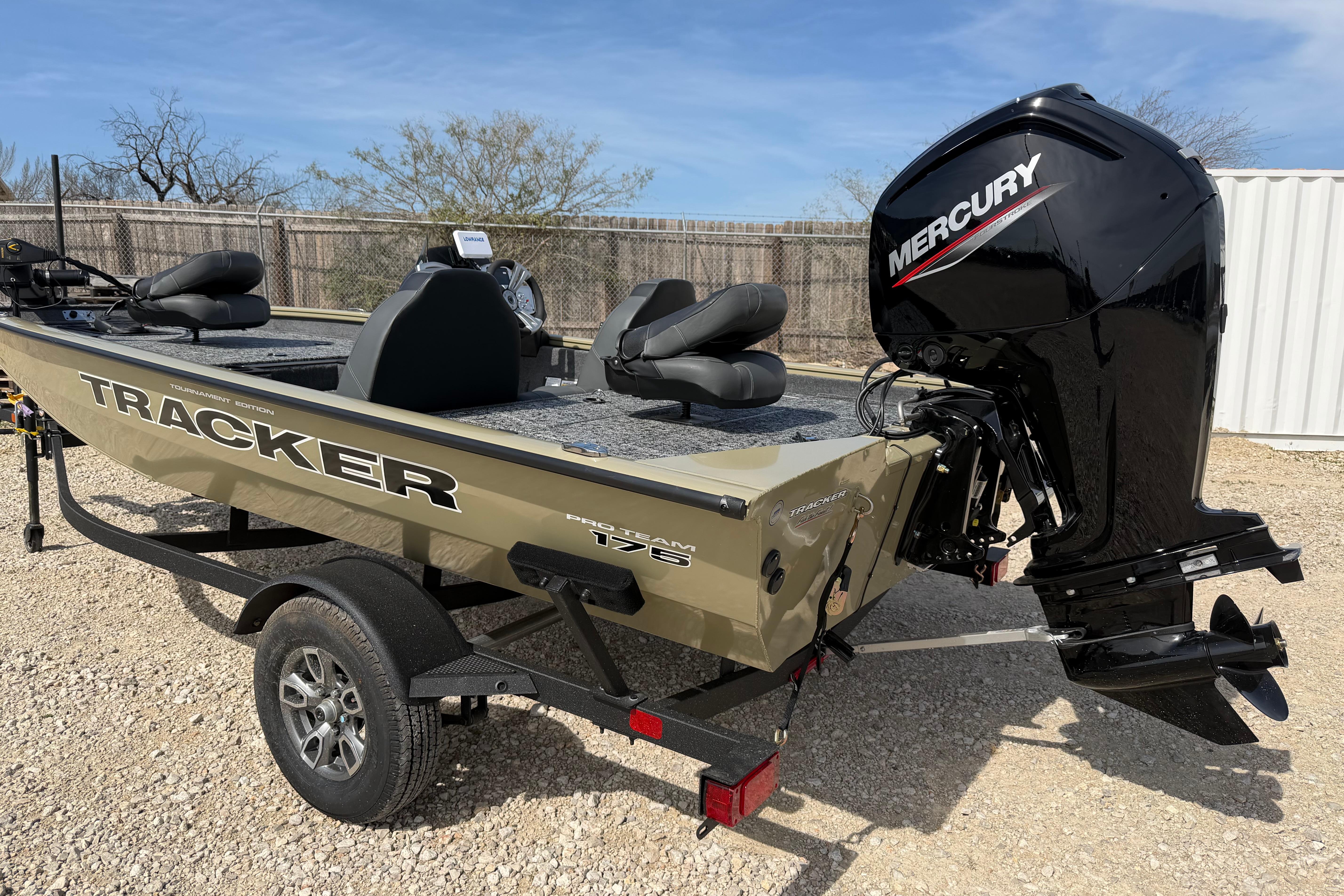 The TRACKER PRO TEAM 175® is one of the most value- and feature-packed boats in the TRACKER stable, and also one of our most popular models. All-welded construction offers superior strength that carries huge decks, abundant storage, and a 21-gallon aerated, divided, and timed livewell. Motivation comes by way of reliable, economical Mercury® power designed for years of exciting performance. The cosole features a TRACKER touchscreen display that keeps an eye on your outboard and more, a Lowrance Hook color fishfinder, and sturdy, responsive steering. With a proven legacy and untold scores of fish caught, the TRACKER PRO TEAM™ 175 delivers tournament-ready fishability and performance with unbeatable value.