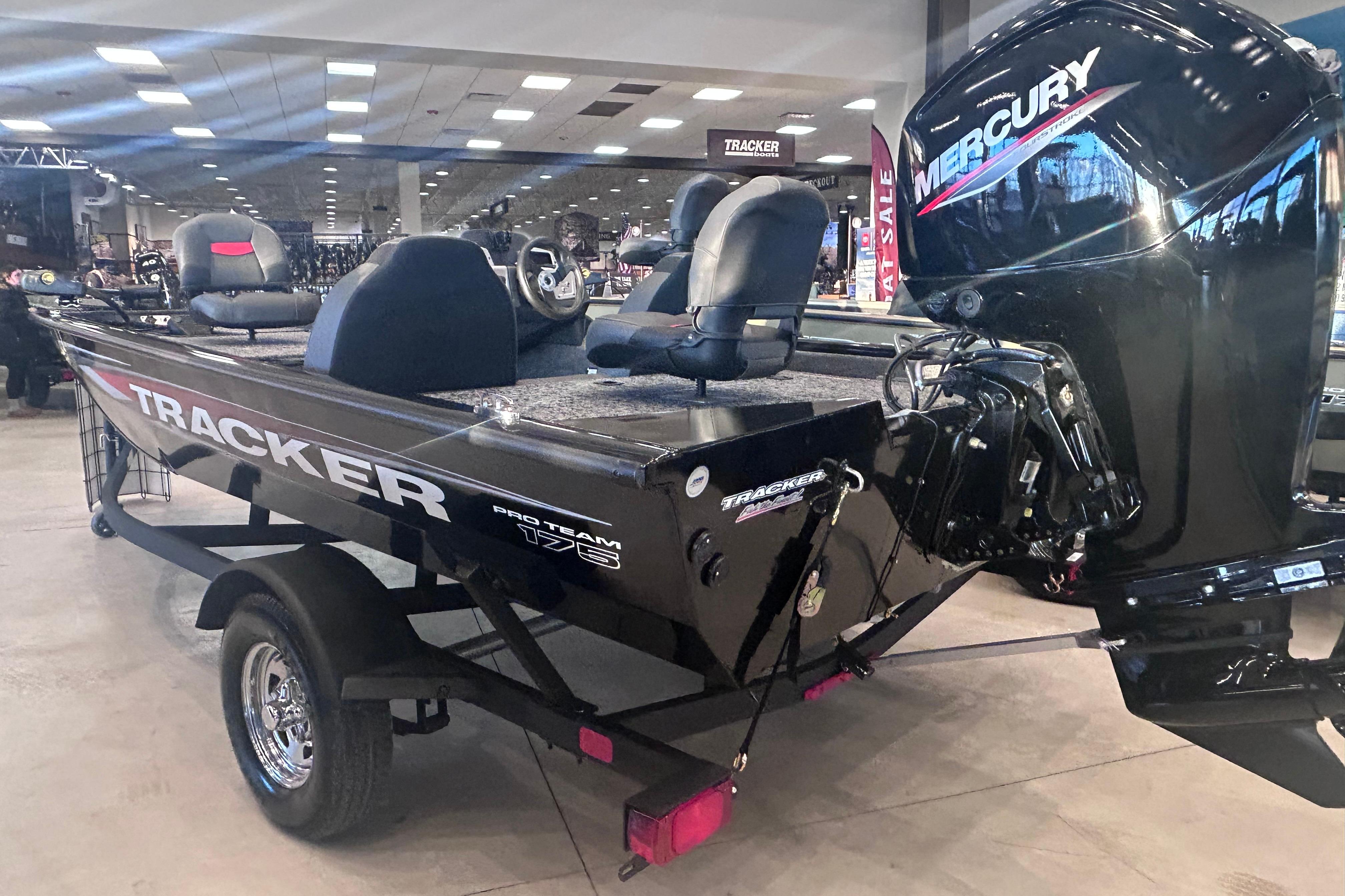 The TRACKER PRO TEAM 175® is one of the most value- and feature-packed boats in the TRACKER stable, and also one of our most popular models. All-welded construction offers superior strength that carries huge decks, abundant storage, and a 21-gallon aerated, divided, and timed livewell. Motivation comes by way of reliable, economical Mercury® power designed for years of exciting performance. The cosole features a TRACKER touchscreen display that keeps an eye on your outboard and more, a Lowrance Hook color fishfinder, and sturdy, responsive steering. With a proven legacy and untold scores of fish caught, the TRACKER PRO TEAM™ 175 delivers tournament-ready fishability and performance with unbeatable value.