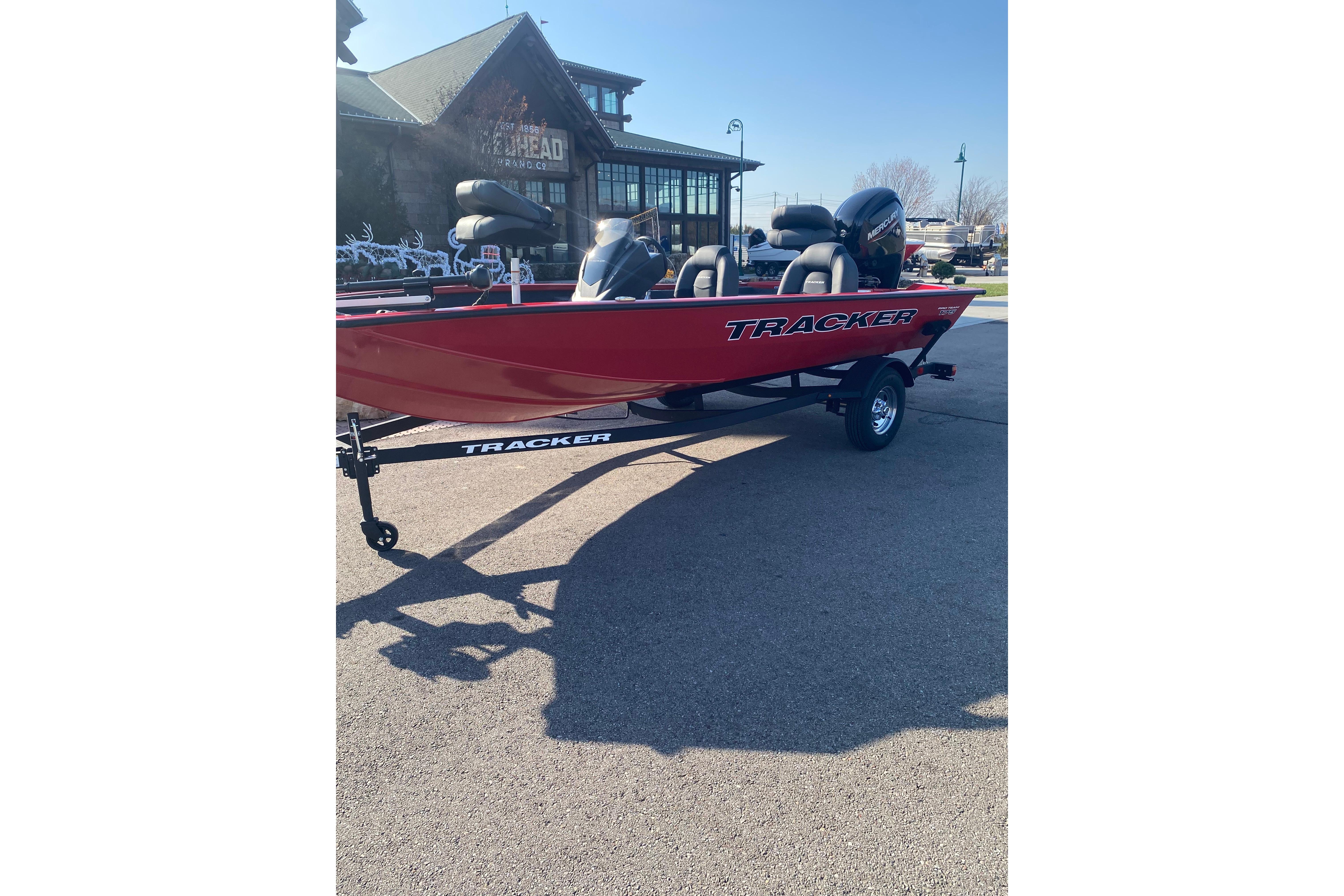 The TRACKER PRO TEAM 175® is one of the most value- and feature-packed boats in the TRACKER stable, and also one of our most popular models. All-welded construction offers superior strength that carries huge decks, abundant storage, and a 21-gallon aerated, divided, and timed livewell. Motivation comes by way of reliable, economical Mercury® power designed for years of exciting performance. The cosole features a TRACKER touchscreen display that keeps an eye on your outboard and more, a Lowrance Hook color fishfinder, and sturdy, responsive steering. With a proven legacy and untold scores of fish caught, the TRACKER PRO TEAM™ 175 delivers tournament-ready fishability and performance with unbeatable value.
