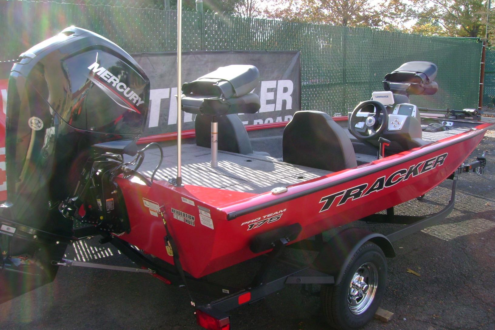 The TRACKER PRO TEAM 175® is one of the most value- and feature-packed boats in the TRACKER stable, and also one of our most popular models. All-welded construction offers superior strength that carries huge decks, abundant storage, and a 21-gallon aerated, divided, and timed livewell. Motivation comes by way of reliable, economical Mercury® power designed for years of exciting performance. The cosole features a TRACKER touchscreen display that keeps an eye on your outboard and more, a Lowrance Hook color fishfinder, and sturdy, responsive steering. With a proven legacy and untold scores of fish caught, the TRACKER PRO TEAM™ 175 delivers tournament-ready fishability and performance with unbeatable value.