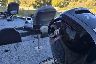 The TRACKER PRO TEAM 175® is one of the most value- and feature-packed boats in the TRACKER stable, and also one of our most popular models. All-welded construction offers superior strength that carries huge decks, abundant storage, and a 21-gallon aerated, divided, and timed livewell. Motivation comes by way of reliable, economical Mercury® power designed for years of exciting performance. The cosole features a TRACKER touchscreen display that keeps an eye on your outboard and more, a Lowrance Hook color fishfinder, and sturdy, responsive steering. With a proven legacy and untold scores of fish caught, the TRACKER PRO TEAM™ 175 delivers tournament-ready fishability and performance with unbeatable value.