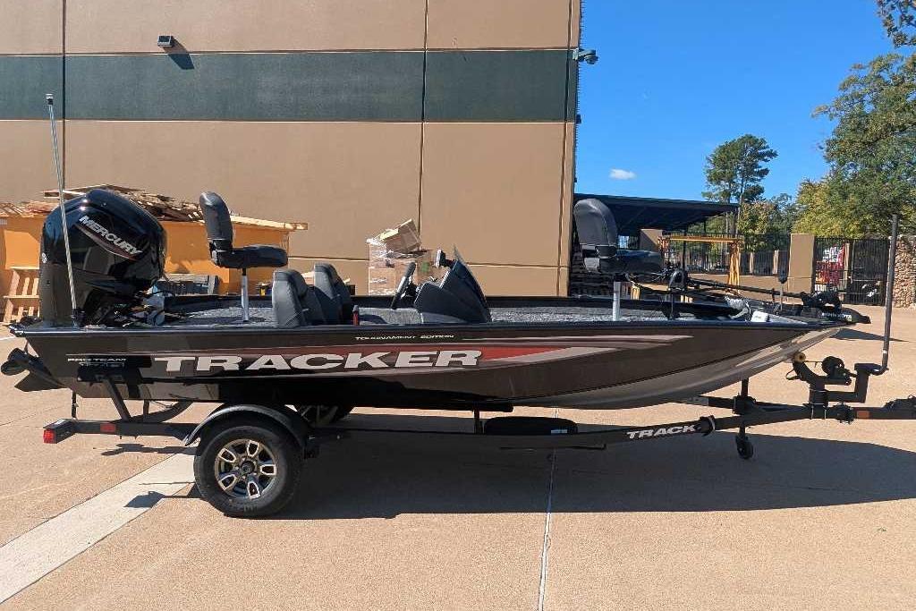 The TRACKER PRO TEAM 175® is one of the most value- and feature-packed boats in the TRACKER stable, and also one of our most popular models. All-welded construction offers superior strength that carries huge decks, abundant storage, and a 21-gallon aerated, divided, and timed livewell. Motivation comes by way of reliable, economical Mercury® power designed for years of exciting performance. The cosole features a TRACKER touchscreen display that keeps an eye on your outboard and more, a Lowrance Hook color fishfinder, and sturdy, responsive steering. With a proven legacy and untold scores of fish caught, the TRACKER PRO TEAM™ 175 delivers tournament-ready fishability and performance with unbeatable value.