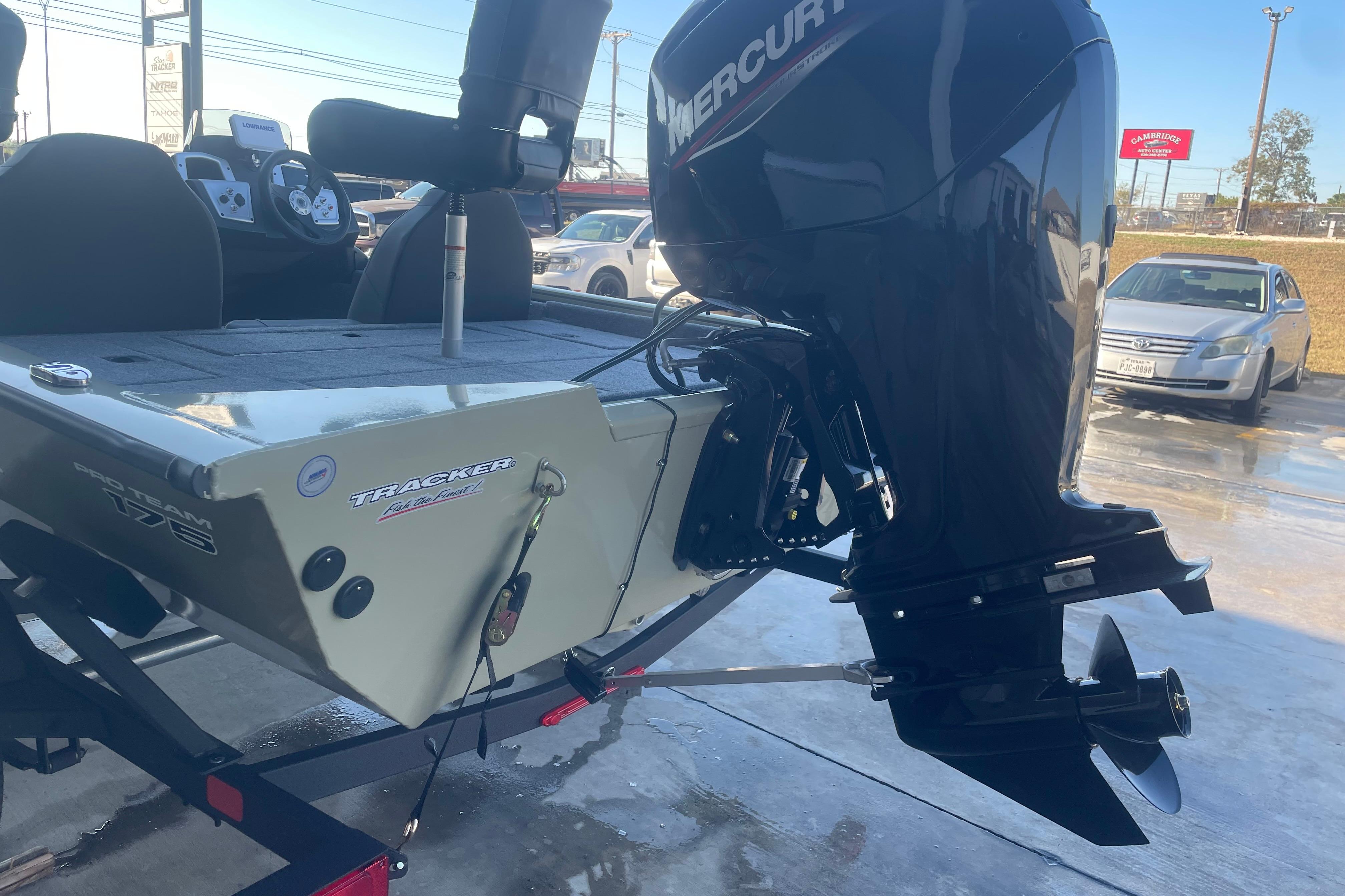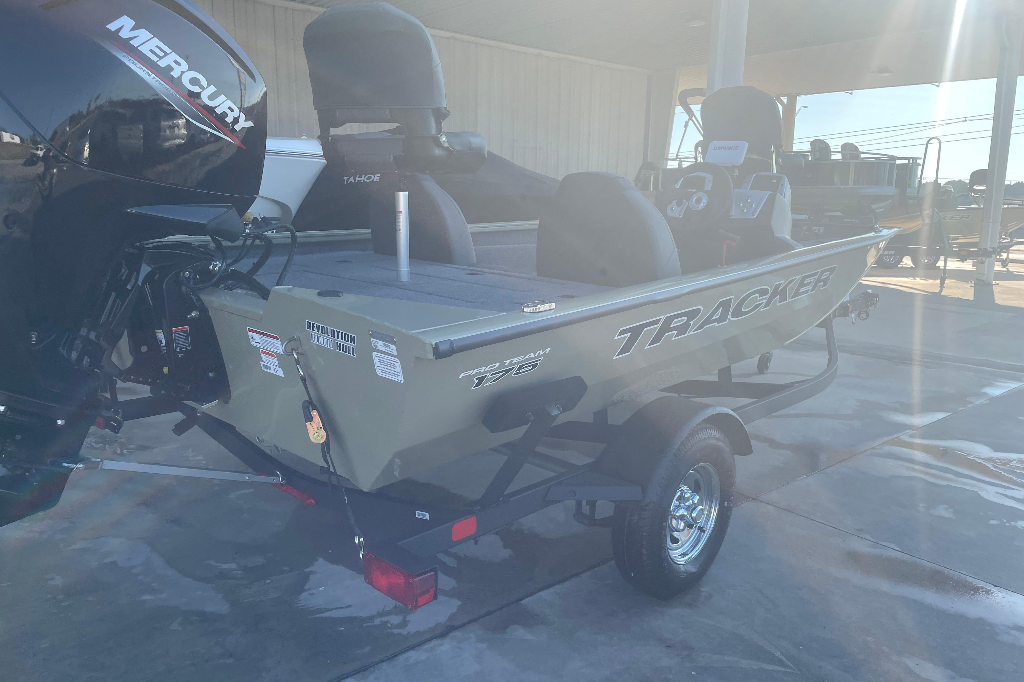 The TRACKER PRO TEAM 175® is one of the most value- and feature-packed boats in the TRACKER stable, and also one of our most popular models. All-welded construction offers superior strength that carries huge decks, abundant storage, and a 21-gallon aerated, divided, and timed livewell. Motivation comes by way of reliable, economical Mercury® power designed for years of exciting performance. The cosole features a TRACKER touchscreen display that keeps an eye on your outboard and more, a Lowrance Hook color fishfinder, and sturdy, responsive steering. With a proven legacy and untold scores of fish caught, the TRACKER PRO TEAM™ 175 delivers tournament-ready fishability and performance with unbeatable value.