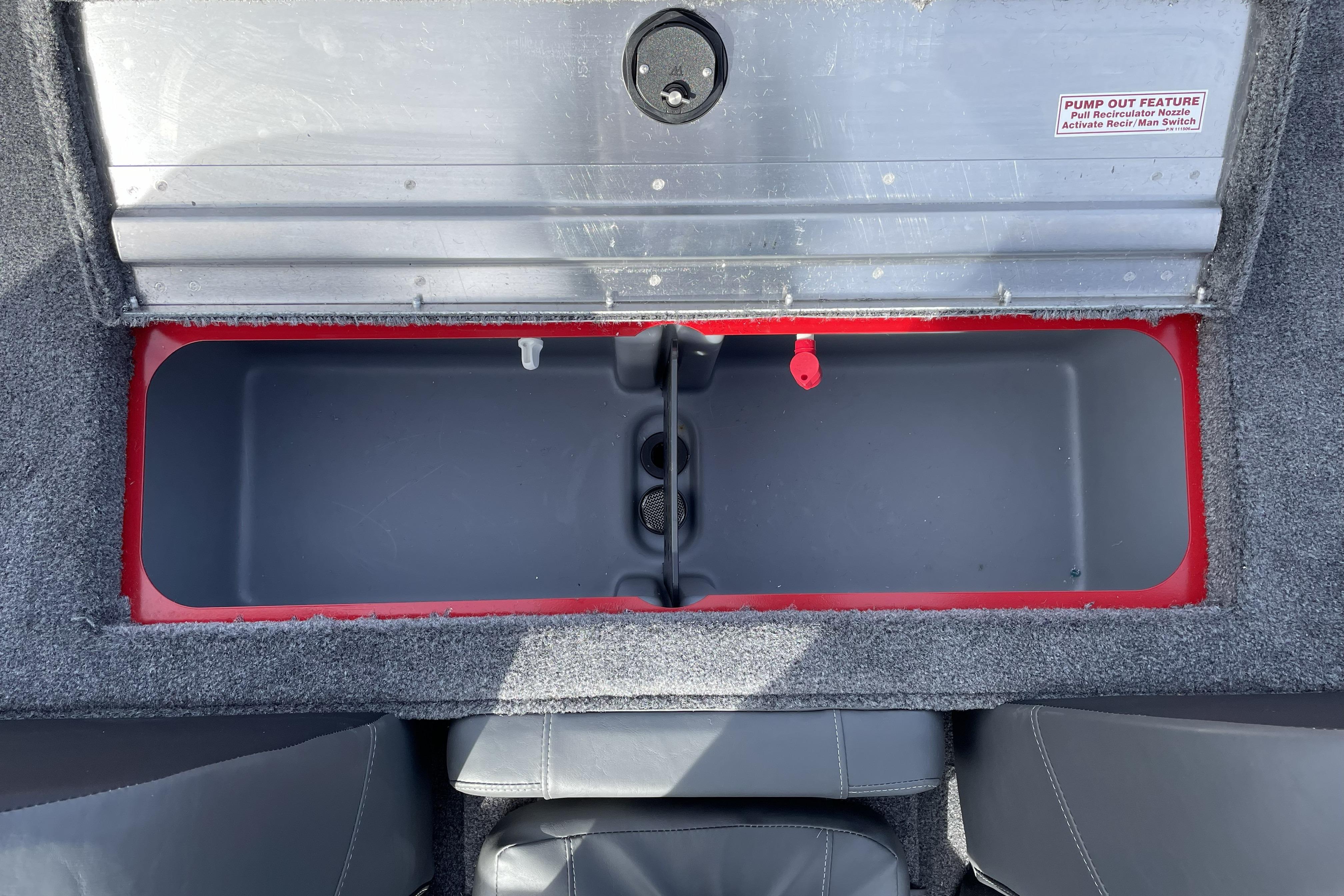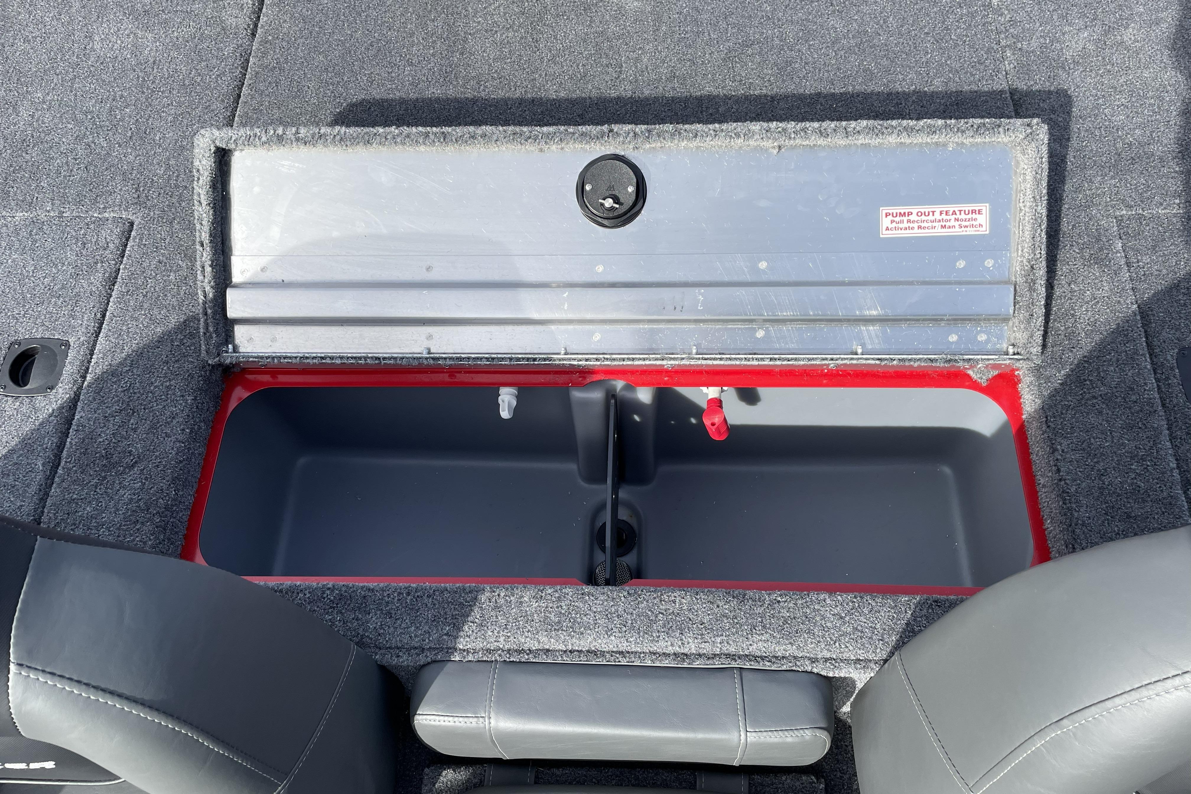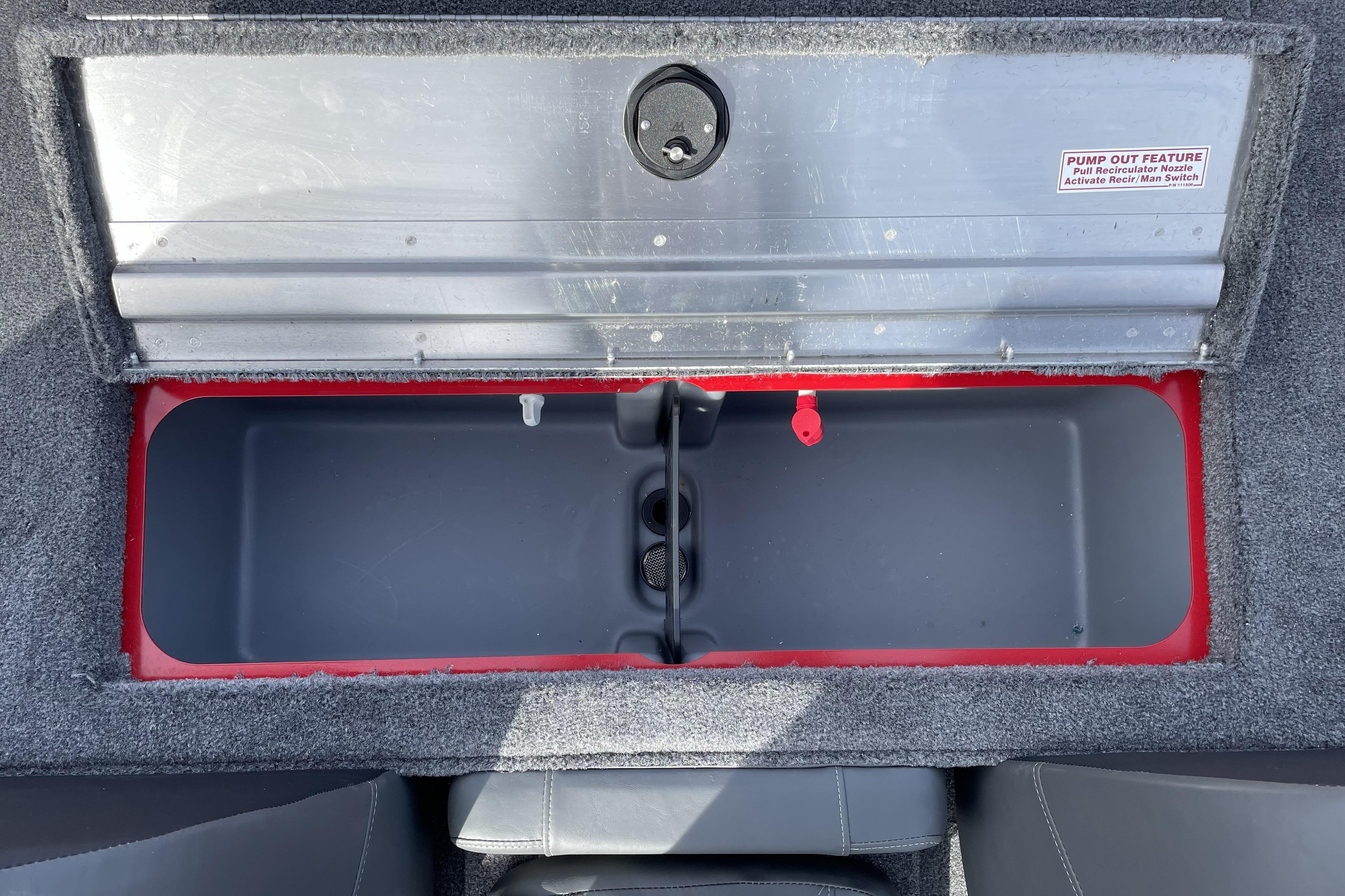• Aft 21-gal. (79.49 L) aerated livewell w/divider, timer, recirculator, pump-out system & oversized overflow drain