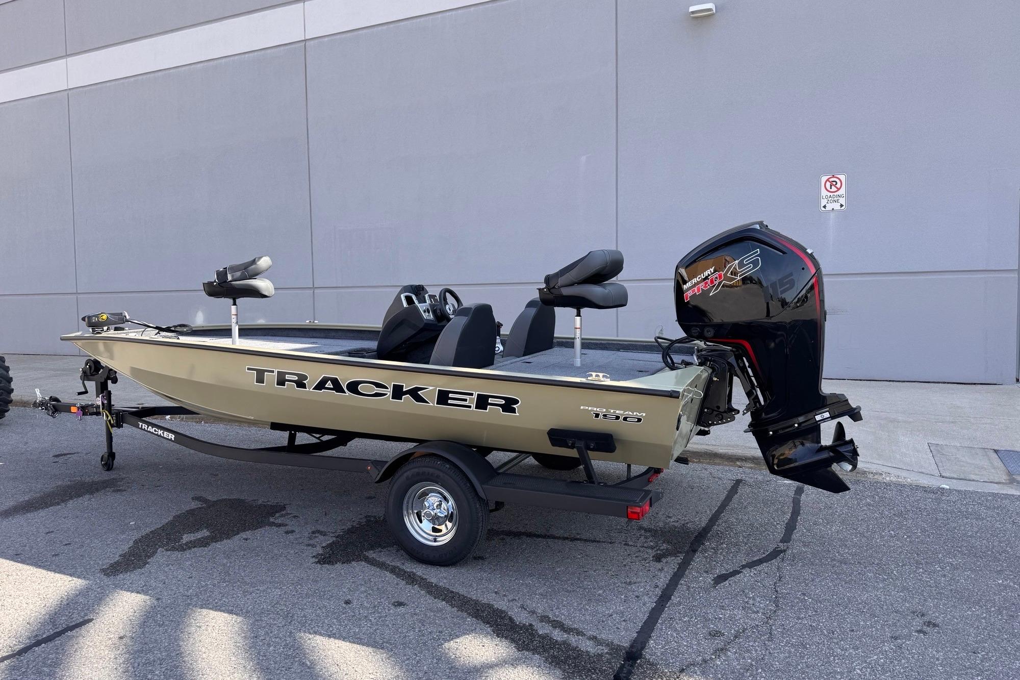 The TRACKER® PRO TEAM™ 190 has all the features and convenience of a tournament rig with a huge dose of value. The wide-open deck features dual 7' rod boxes, a huge tackle stow and a step with a cooler, along with the cutting-edge Tracker® touchscreen display. This display adds a whole new level of convenience and control to your boating experience by letting you keep an eye on critical engine parameters at a glance. Inside, the robotically-welded longitudinal stringer system unitizes the hull and transom and and is strengthened by foam flotation that works in in concert to give full support to the running surface. Outsisde the hull is protected with our exclusive DIAMOND COAT™ 3.0 finish that is specially formulated for years of rich, fade-resistant protection. And for your peace of mind, the PRO TEAM™ 190 is backed by the TRACKER PROMISE—the best factory warranty in aluminum boats, with 5-year bow-to-stern coverage and a lifetime deck and hull structure warranty.