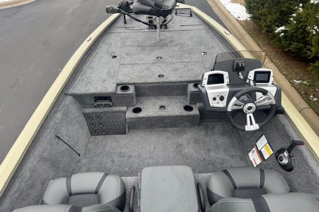 • 8 drink holders—2 on bow deck, 2 in bow tackle storage, 2 on step cooler & 2 floor mounted