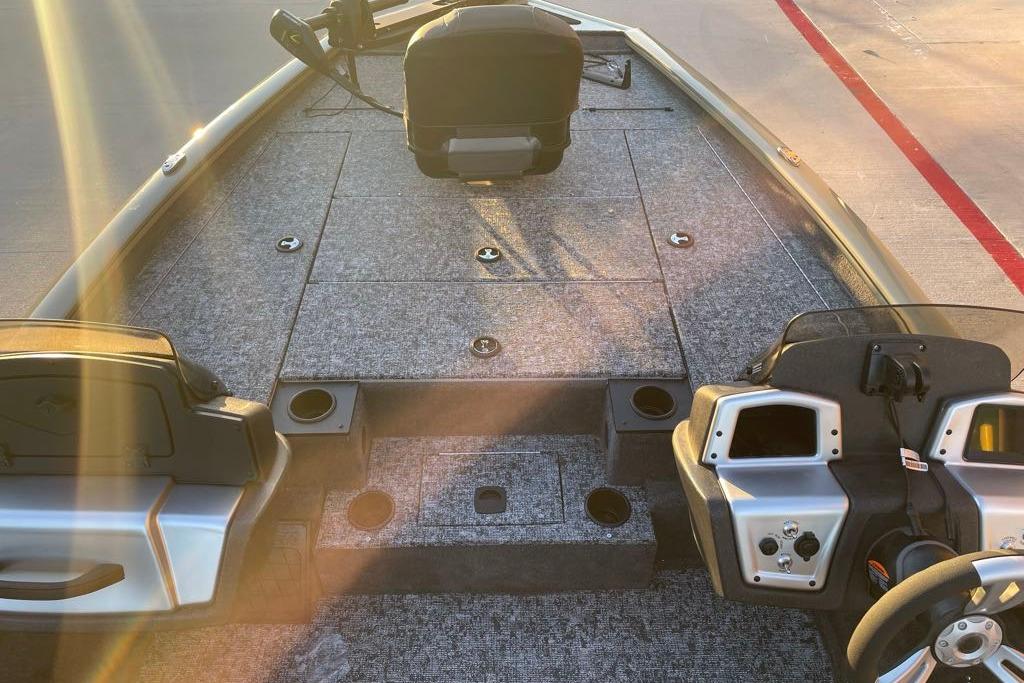 • 8 drink holders—2 on bow deck, 2 in bow tackle storage, 2 on step cooler & 2 floor mounted