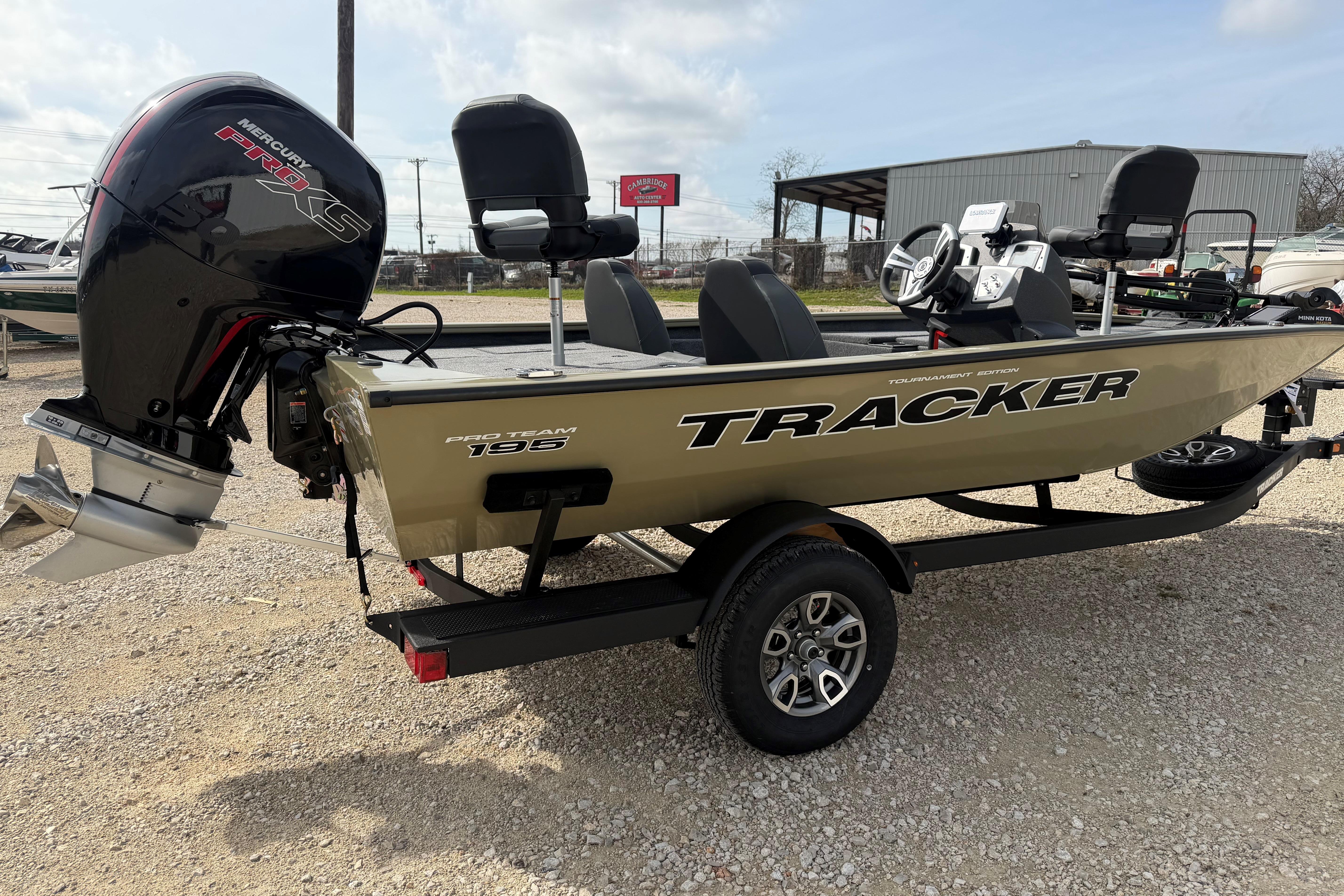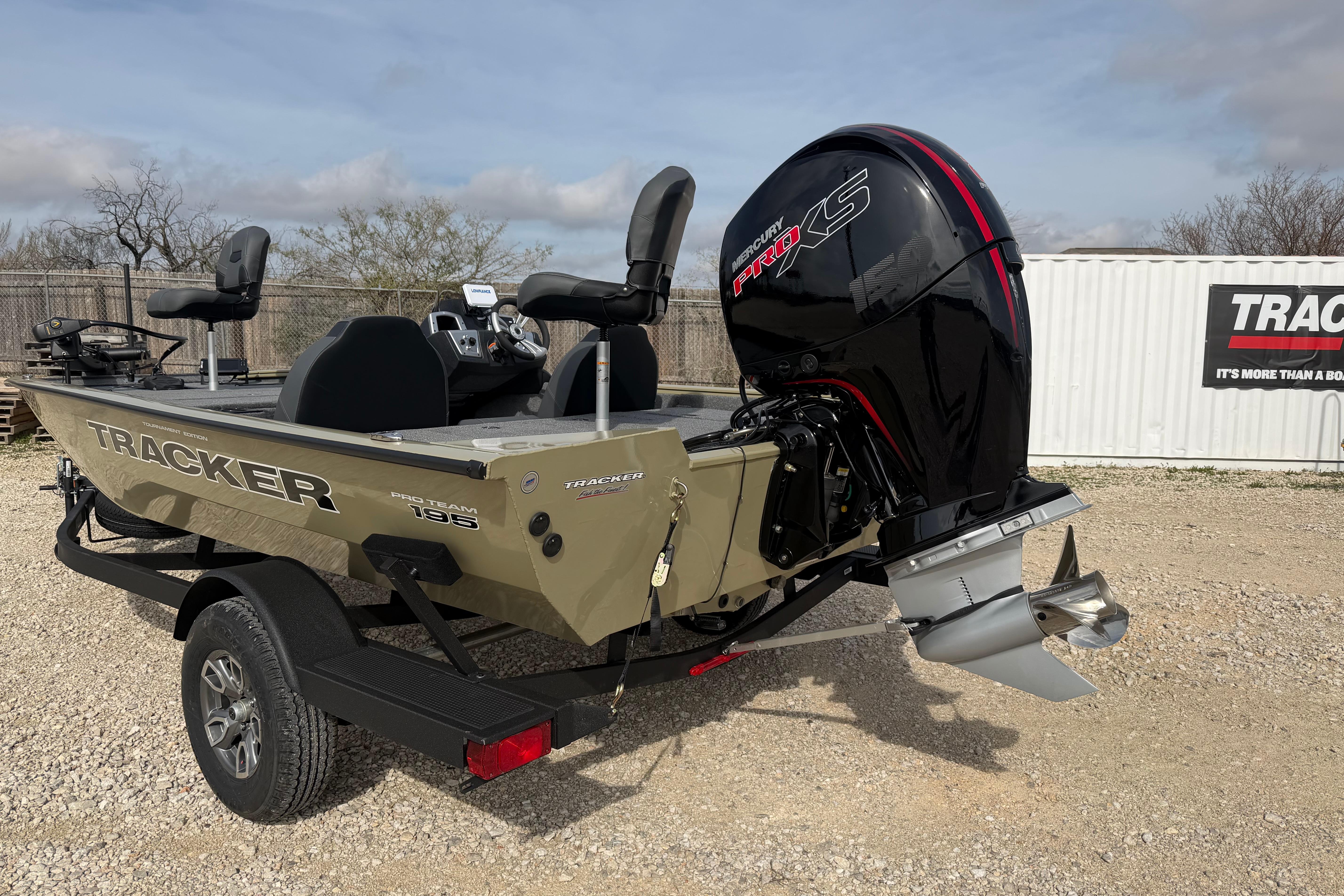 The TRACKER® PRO TEAM™ 195 is the flagship bass boat of the PRO TEAM lineup, designed to elevate your fishing experience. This large, fast, all-welded boat is equipped with carefully selected features to help you excel on the water. Its proven layout includes dual Lowrance® fishfinders, an upgraded Minn Kota® trolling motor with two batteries, spacious center tackle storage, and dual 8’ bow rod boxes—giving you everything you need for a successful day of fishing. Additionally, the boat now features a state-of-the-art Tracker touchscreen gauge display, providing a new level of convenience and control by allowing easy access to crucial information and features. Powered by a smooth and reliable 150 hp Mercury FourStroke outboard engine, this boat delivers top-notch performance. With the TRACKER PROMISE, which offers the best factory warranty in aluminum boats, you can fish with confidence knowing you’re supported by the industry’s best. The TRACKER® PRO TEAM™ 195 is truly the ultimate fishing machine for anglers who demand the best.