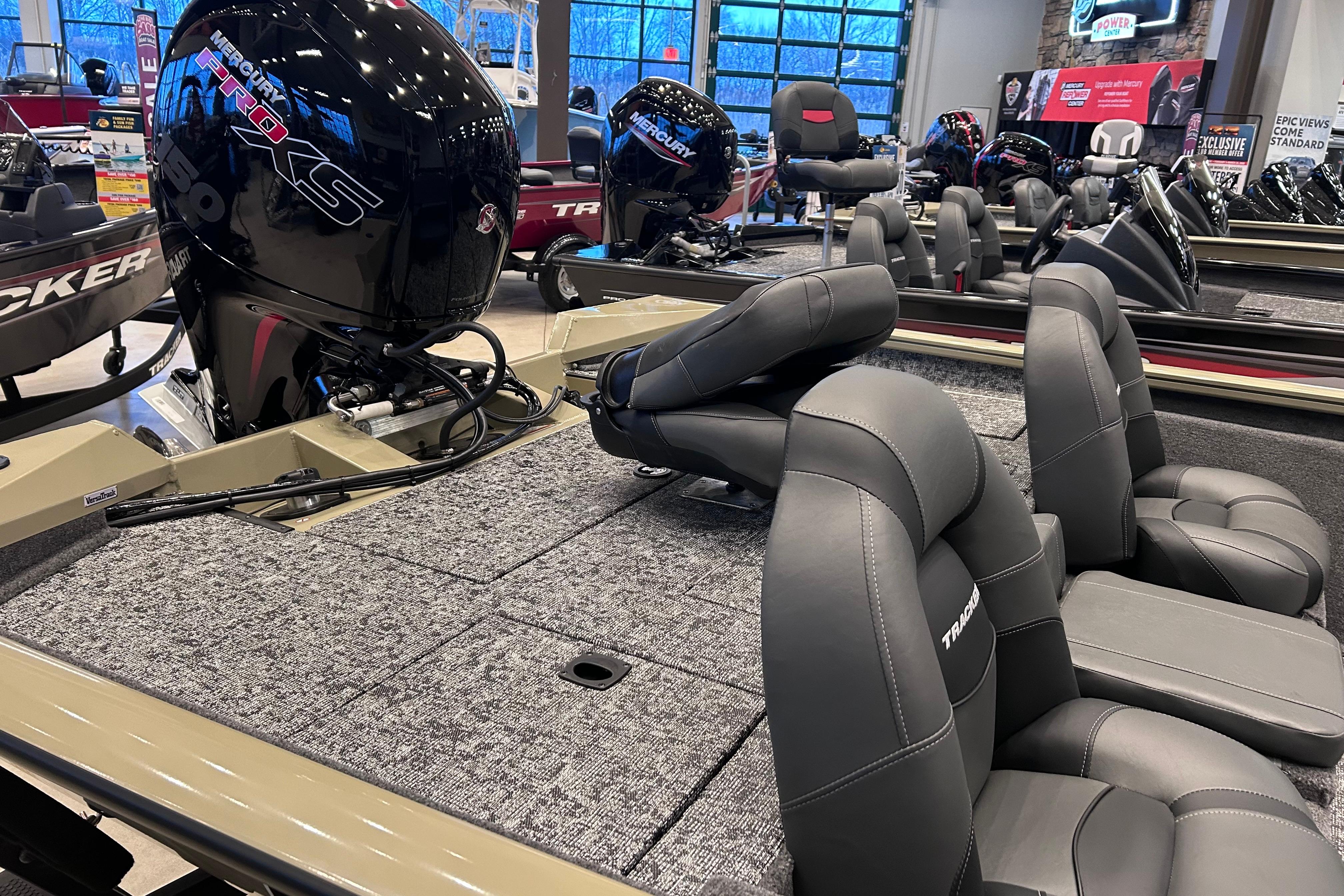 The TRACKER® PRO TEAM™ 195 is the flagship bass boat of the PRO TEAM lineup, designed to elevate your fishing experience. This large, fast, all-welded boat is equipped with carefully selected features to help you excel on the water. Its proven layout includes dual Lowrance® fishfinders, an upgraded Minn Kota® trolling motor with two batteries, spacious center tackle storage, and dual 8’ bow rod boxes—giving you everything you need for a successful day of fishing. Additionally, the boat now features a state-of-the-art Tracker touchscreen gauge display, providing a new level of convenience and control by allowing easy access to crucial information and features. Powered by a smooth and reliable 150 hp Mercury FourStroke outboard engine, this boat delivers top-notch performance. With the TRACKER PROMISE, which offers the best factory warranty in aluminum boats, you can fish with confidence knowing you’re supported by the industry’s best. The TRACKER® PRO TEAM™ 195 is truly the ultimate fishing machine for anglers who demand the best.