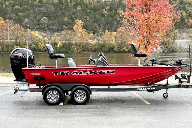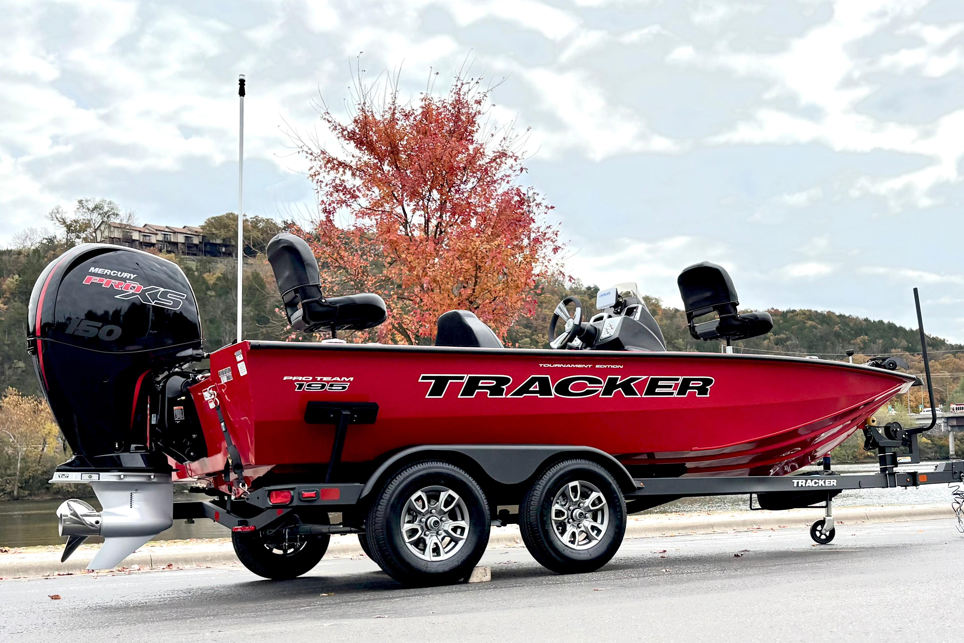 The TRACKER® PRO TEAM™ 195 is the flagship bass boat of the PRO TEAM lineup, designed to elevate your fishing experience. This large, fast, all-welded boat is equipped with carefully selected features to help you excel on the water. Its proven layout includes dual Lowrance® fishfinders, an upgraded Minn Kota® trolling motor with two batteries, spacious center tackle storage, and dual 8’ bow rod boxes—giving you everything you need for a successful day of fishing. Additionally, the boat now features a state-of-the-art Tracker touchscreen gauge display, providing a new level of convenience and control by allowing easy access to crucial information and features. Powered by a smooth and reliable 150 hp Mercury FourStroke outboard engine, this boat delivers top-notch performance. With the TRACKER PROMISE, which offers the best factory warranty in aluminum boats, you can fish with confidence knowing you’re supported by the industry’s best. The TRACKER® PRO TEAM™ 195 is truly the ultimate fishing machine for anglers who demand the best.