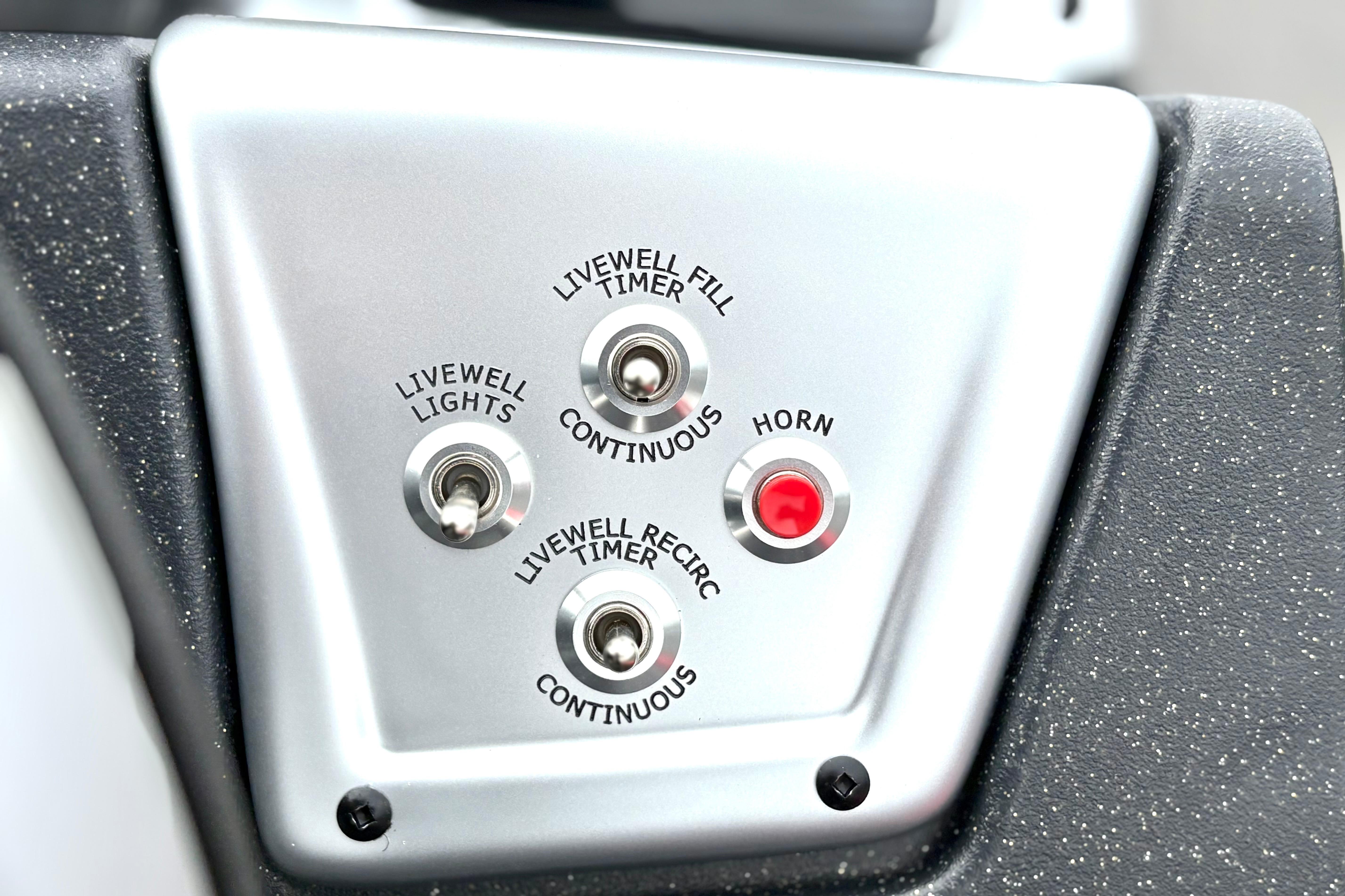 • Lighted aft 27-gal. (102.21 L) aerated livewell w/divider, timer, recirculator, pump-out system & dual overflow drain