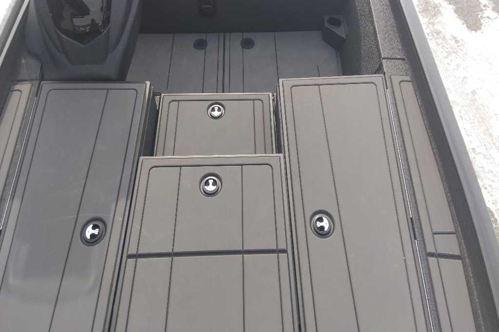 • 6 drink holders—2 on bow deck, 2 in bow tackle storage & 2 floor mounted