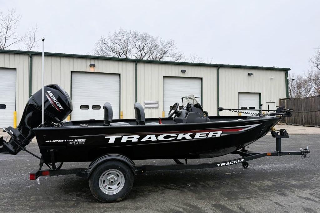 The TRACKER SUPER GUIDE V-16 SC is brimming with features, value, and space. The side console design optimizes space and storage to give a bigger presence. The all-welded hull is robotically welded for maximum strength and precision, giving you peace of mind when the swells kick up. Multiple seating locations let you tailor the interior for the day at hand, and comfort comes by way of our legendary handmade folding fishing seats. This V-16 SC comes standard with a powerful and efficient Mercury FourStroke outboard engine and a custom-matched GALVASHIELD Impact trailer for smooth, safe transportation. And with the TRACKER PROMISE backing it up, you can enjoy peace of mind knowing you have the best factory warranty in aluminum boats.