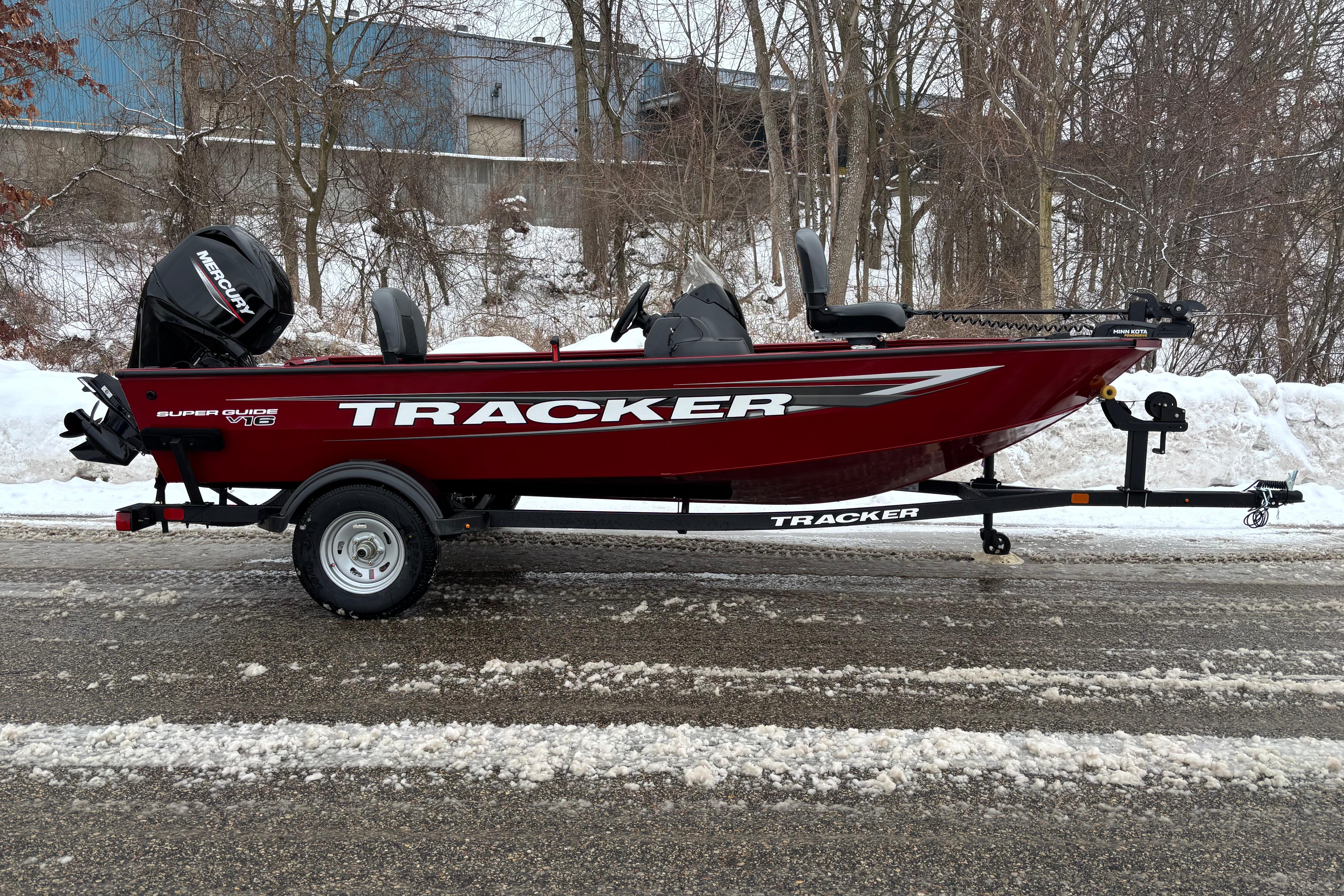 The TRACKER SUPER GUIDE V-16 SC is brimming with features, value, and space. The side console design optimizes space and storage to give a bigger presence. The all-welded hull is robotically welded for maximum strength and precision, giving you peace of mind when the swells kick up. Multiple seating locations let you tailor the interior for the day at hand, and comfort comes by way of our legendary handmade folding fishing seats. This V-16 SC comes standard with a powerful and efficient Mercury FourStroke outboard engine and a custom-matched GALVASHIELD Impact trailer for smooth, safe transportation. And with the TRACKER PROMISE backing it up, you can enjoy peace of mind knowing you have the best factory warranty in aluminum boats.
