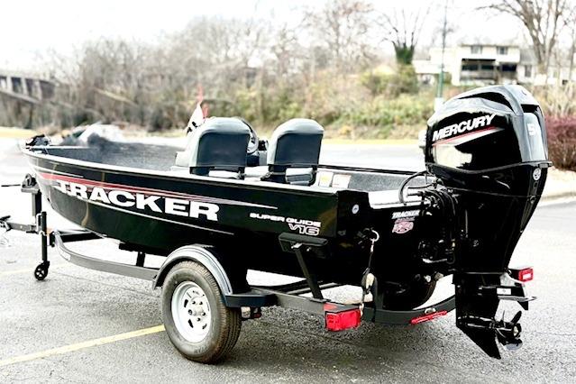 The TRACKER SUPER GUIDE V-16 SC is brimming with features, value, and space. The side console design optimizes space and storage to give a bigger presence. The all-welded hull is robotically welded for maximum strength and precision, giving you peace of mind when the swells kick up. Multiple seating locations let you tailor the interior for the day at hand, and comfort comes by way of our legendary handmade folding fishing seats. This V-16 SC comes standard with a powerful and efficient Mercury FourStroke outboard engine and a custom-matched GALVASHIELD Impact trailer for smooth, safe transportation. And with the TRACKER PROMISE backing it up, you can enjoy peace of mind knowing you have the best factory warranty in aluminum boats.