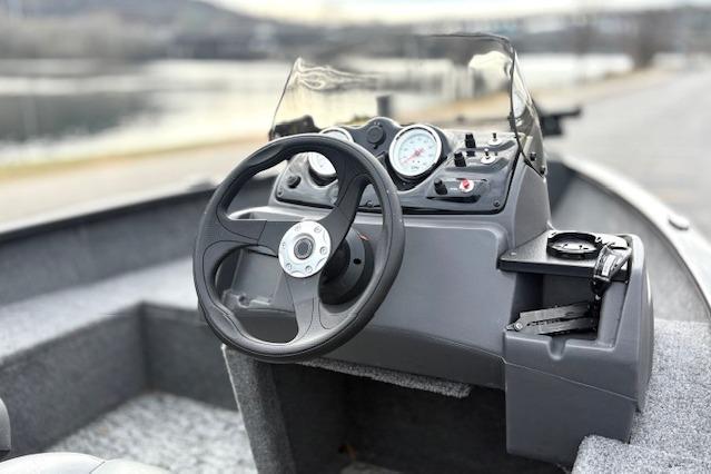 • All-welded, 2-piece .100 aluminum Deep V hull w/wide beam & stable bottom for a smoother, drier ride in rough waters