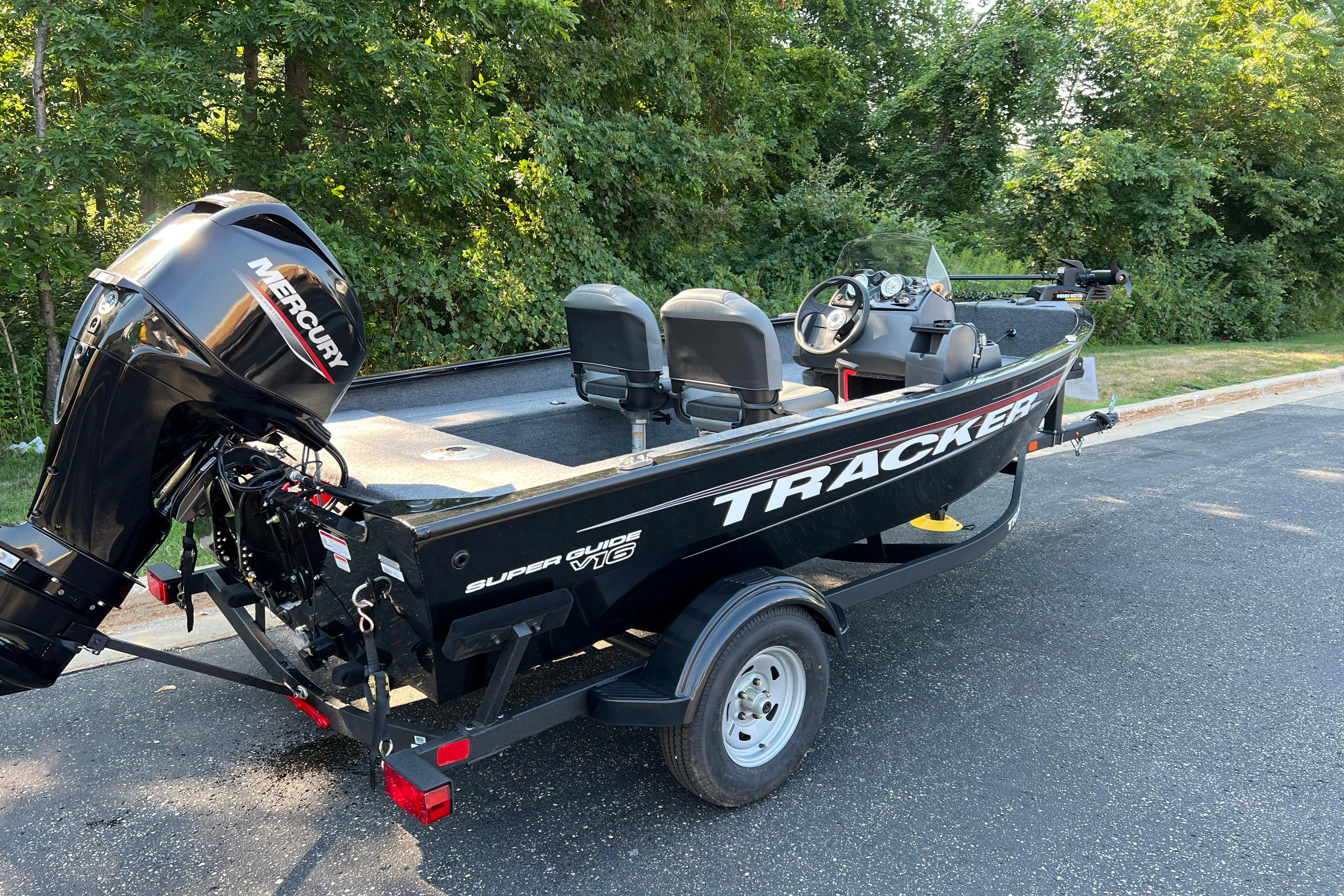 The TRACKER SUPER GUIDE V-16 SC is brimming with features, value, and space. The side console design optimizes space and storage to give a bigger presence. The all-welded hull is robotically welded for maximum strength and precision, giving you peace of mind when the swells kick up. Multiple seating locations let you tailor the interior for the day at hand, and comfort comes by way of our legendary handmade folding fishing seats. This V-16 SC comes standard with a powerful and efficient Mercury FourStroke outboard engine and a custom-matched GALVASHIELD Impact trailer for smooth, safe transportation. And with the TRACKER PROMISE backing it up, you can enjoy peace of mind knowing you have the best factory warranty in aluminum boats.