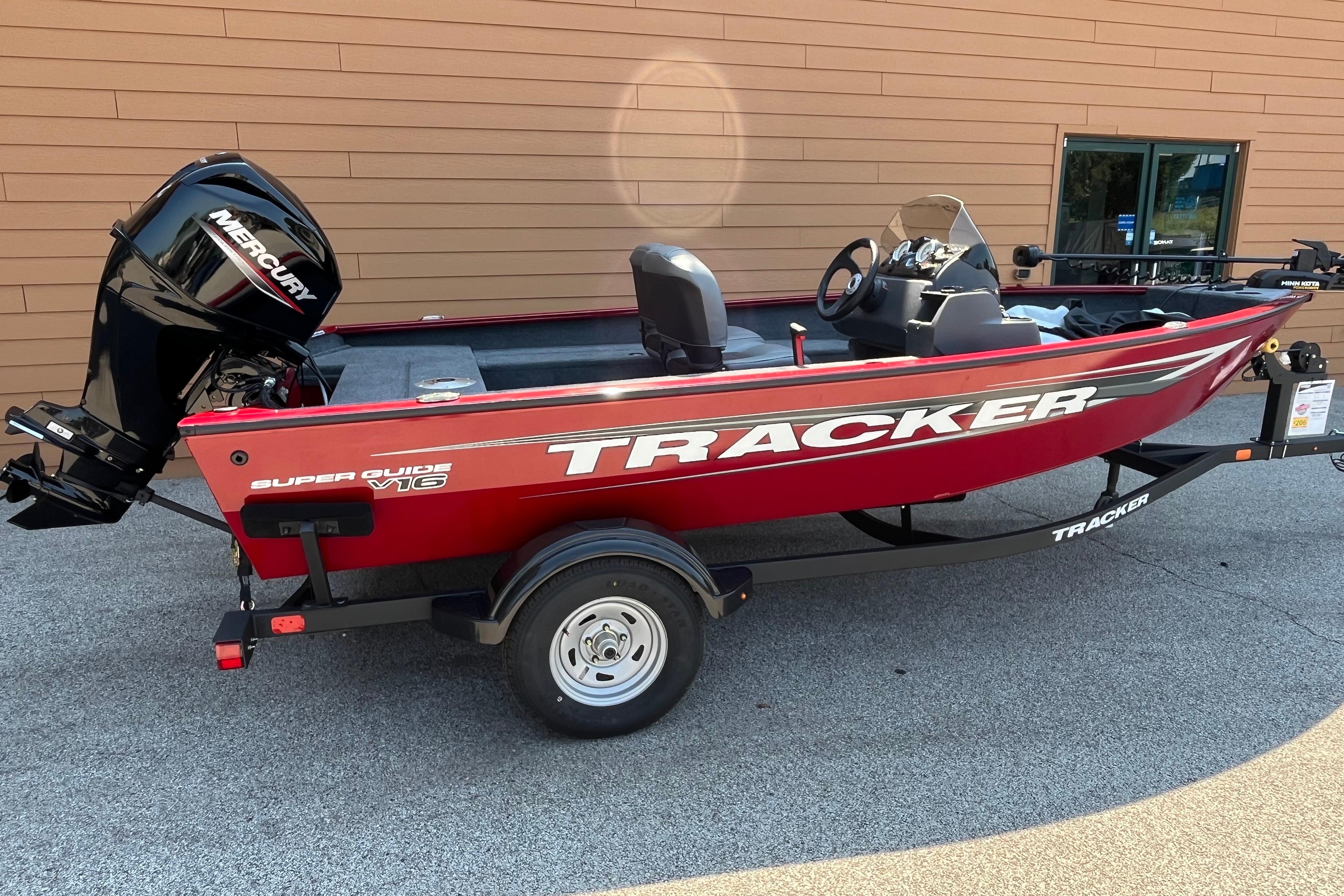 The TRACKER SUPER GUIDE V-16 SC is brimming with features, value, and space. The side console design optimizes space and storage to give a bigger presence. The all-welded hull is robotically welded for maximum strength and precision, giving you peace of mind when the swells kick up. Multiple seating locations let you tailor the interior for the day at hand, and comfort comes by way of our legendary handmade folding fishing seats. This V-16 SC comes standard with a powerful and efficient Mercury FourStroke outboard engine and a custom-matched GALVASHIELD Impact trailer for smooth, safe transportation. And with the TRACKER PROMISE backing it up, you can enjoy peace of mind knowing you have the best factory warranty in aluminum boats.