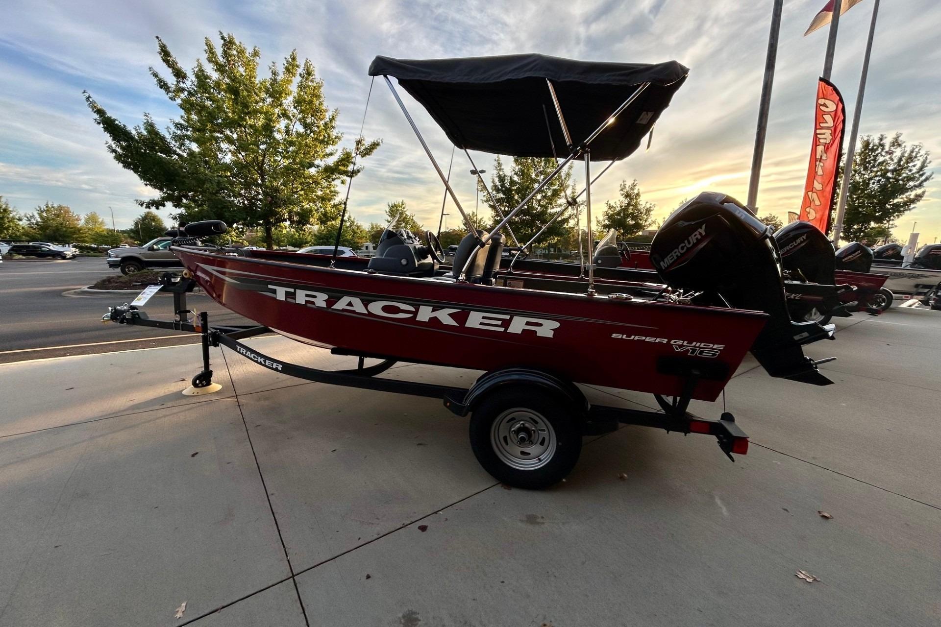 The TRACKER SUPER GUIDE V-16 SC is brimming with features, value, and space. The side console design optimizes space and storage to give a bigger presence. The all-welded hull is robotically welded for maximum strength and precision, giving you peace of mind when the swells kick up. Multiple seating locations let you tailor the interior for the day at hand, and comfort comes by way of our legendary handmade folding fishing seats. This V-16 SC comes standard with a powerful and efficient Mercury FourStroke outboard engine and a custom-matched GALVASHIELD Impact trailer for smooth, safe transportation. And with the TRACKER PROMISE backing it up, you can enjoy peace of mind knowing you have the best factory warranty in aluminum boats.