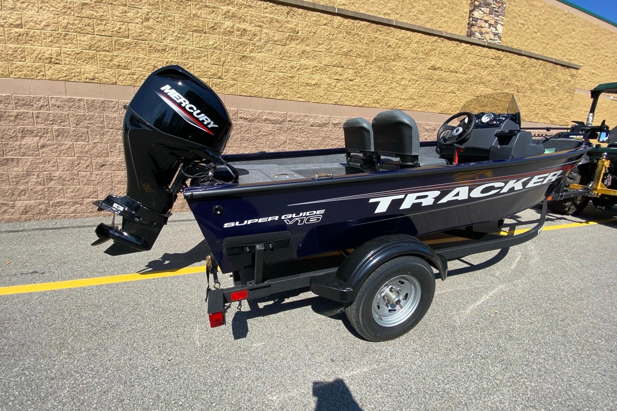 The TRACKER SUPER GUIDE V-16 SC is brimming with features, value, and space. The side console design optimizes space and storage to give a bigger presence. The all-welded hull is robotically welded for maximum strength and precision, giving you peace of mind when the swells kick up. Multiple seating locations let you tailor the interior for the day at hand, and comfort comes by way of our legendary handmade folding fishing seats. This V-16 SC comes standard with a powerful and efficient Mercury FourStroke outboard engine and a custom-matched GALVASHIELD Impact trailer for smooth, safe transportation. And with the TRACKER PROMISE backing it up, you can enjoy peace of mind knowing you have the best factory warranty in aluminum boats.