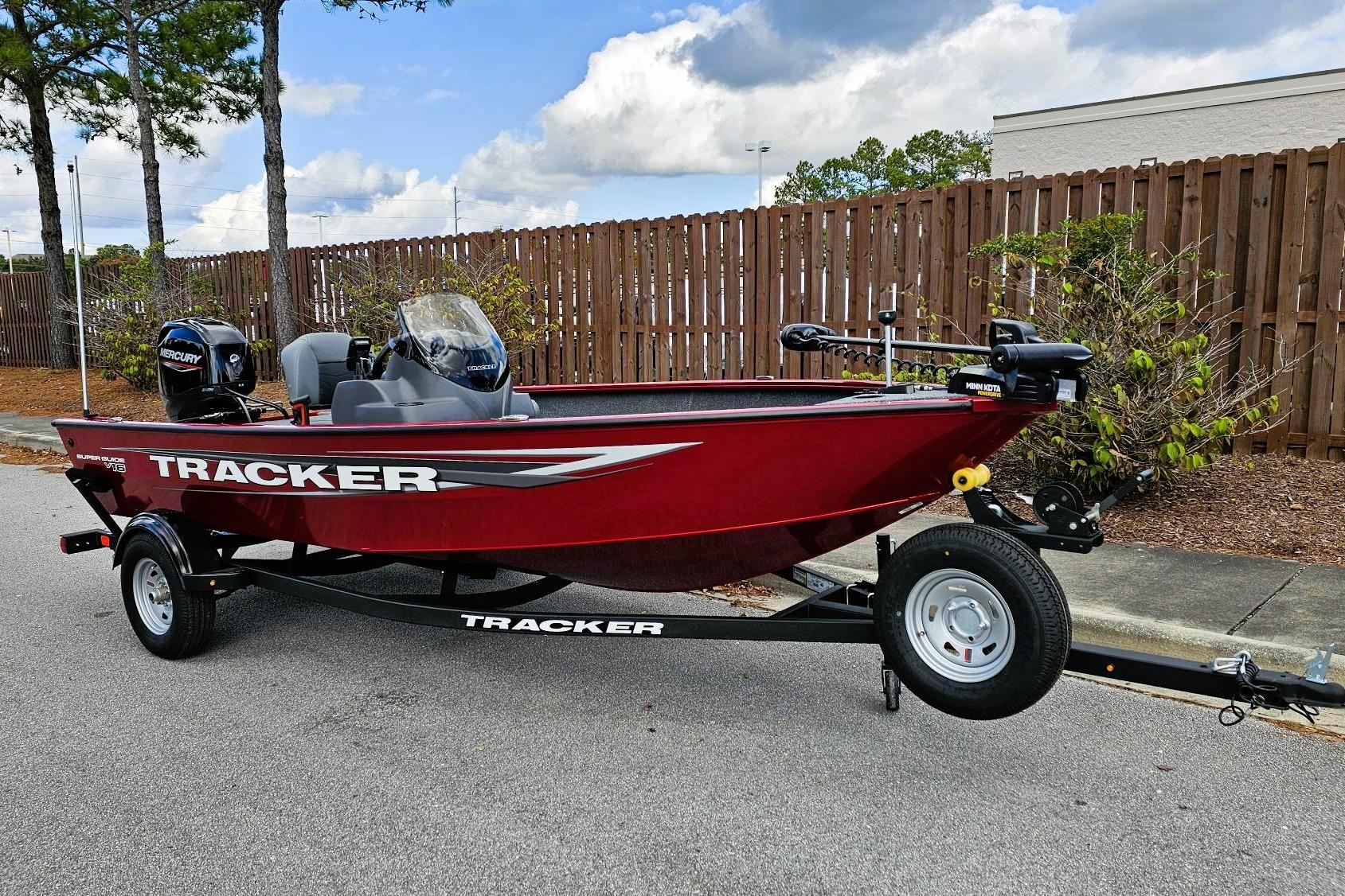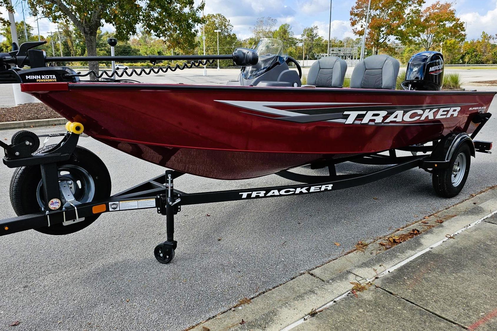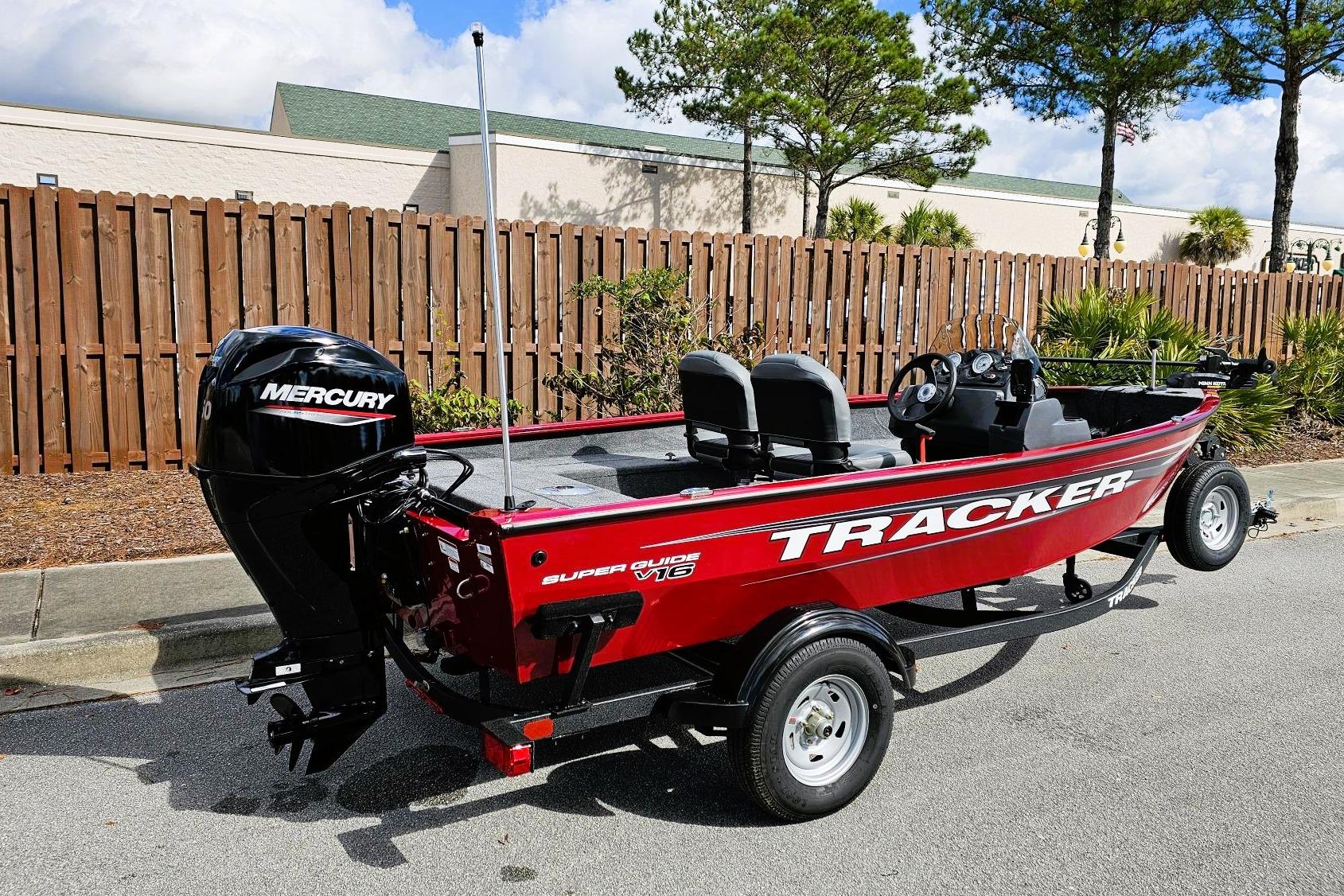 The TRACKER SUPER GUIDE V-16 SC is brimming with features, value, and space. The side console design optimizes space and storage to give a bigger presence. The all-welded hull is robotically welded for maximum strength and precision, giving you peace of mind when the swells kick up. Multiple seating locations let you tailor the interior for the day at hand, and comfort comes by way of our legendary handmade folding fishing seats. This V-16 SC comes standard with a powerful and efficient Mercury FourStroke outboard engine and a custom-matched GALVASHIELD Impact trailer for smooth, safe transportation. And with the TRACKER PROMISE backing it up, you can enjoy peace of mind knowing you have the best factory warranty in aluminum boats.