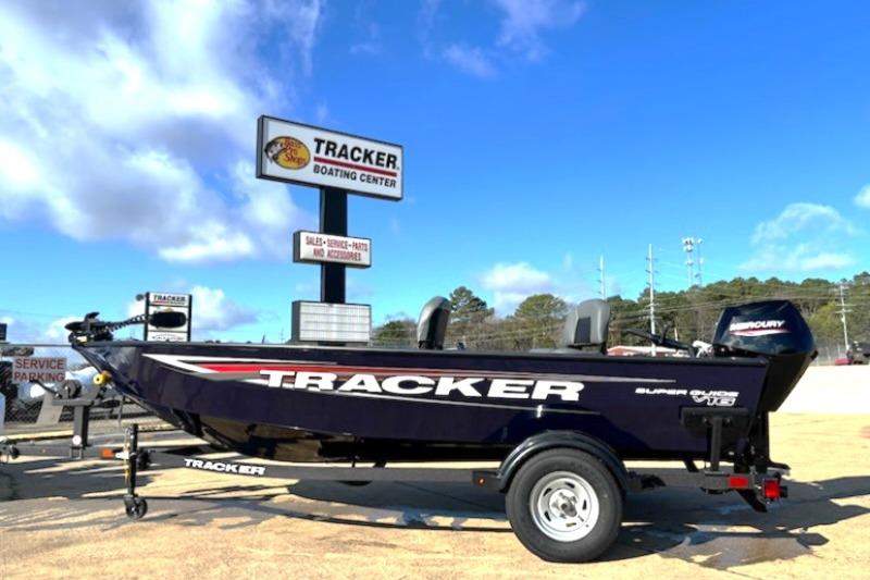 The newest TRACKER begins with a proven and highly acclaimed hull and adds tiller steering for more space, versatility, and simplicity. The Super Guide V-16 Tiller features the same sturdy, proven, and guaranteed build quality as our entire all-welded, rivet-free lineup. With increased cockpit space and a non-skid flooring, the new Super Guide V-16 Tiller is as wide open for possibilities as your day. It's equipped with spacious storages, multiple seating locations, an intuitive and well-equipped gauge pod, and of course, the same peace of mind that runs throughout our lineup. With the tiller in hand, you command smooth, reliable Mercury® power and a boat that's the result of decades of passionately pursuing excellence.