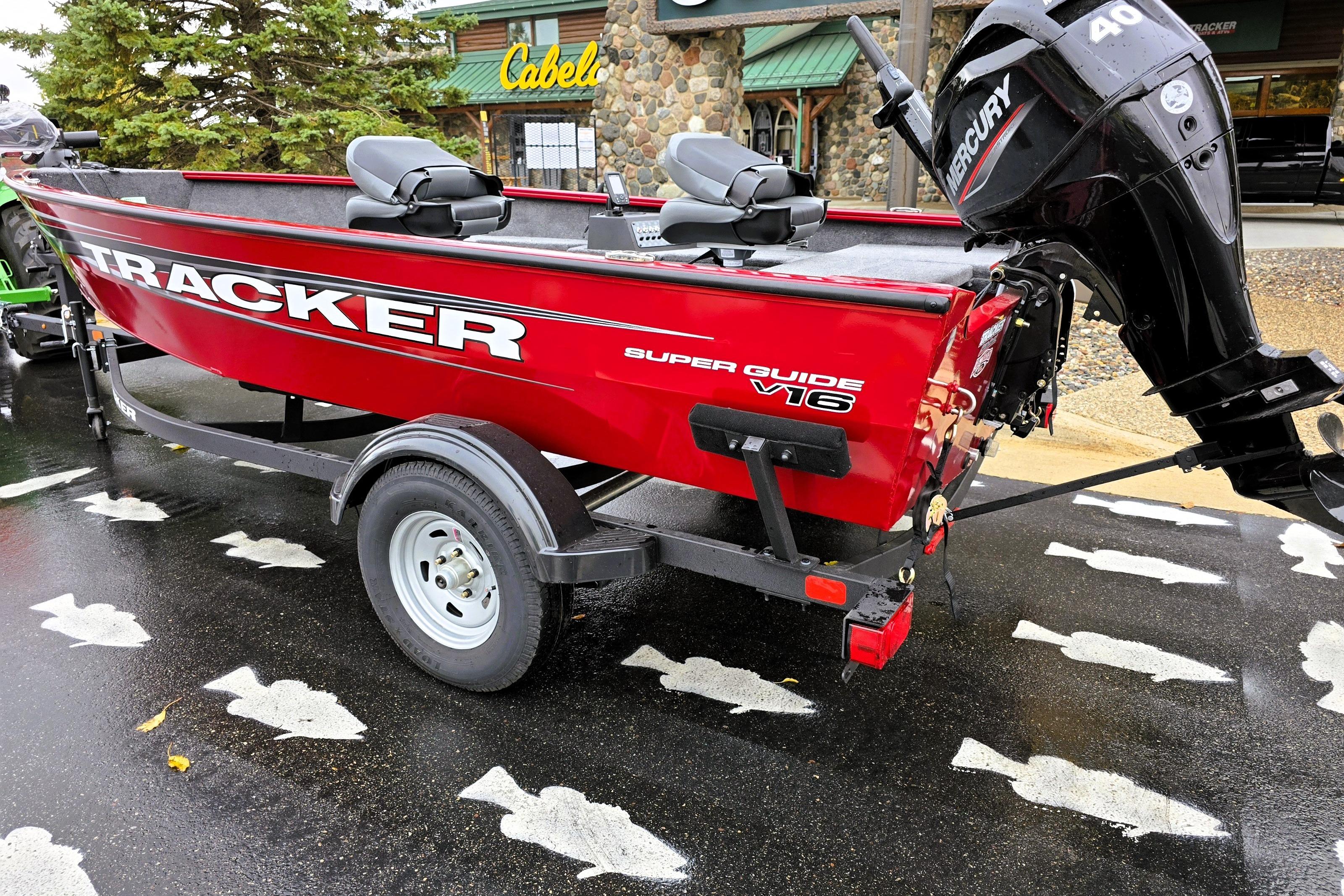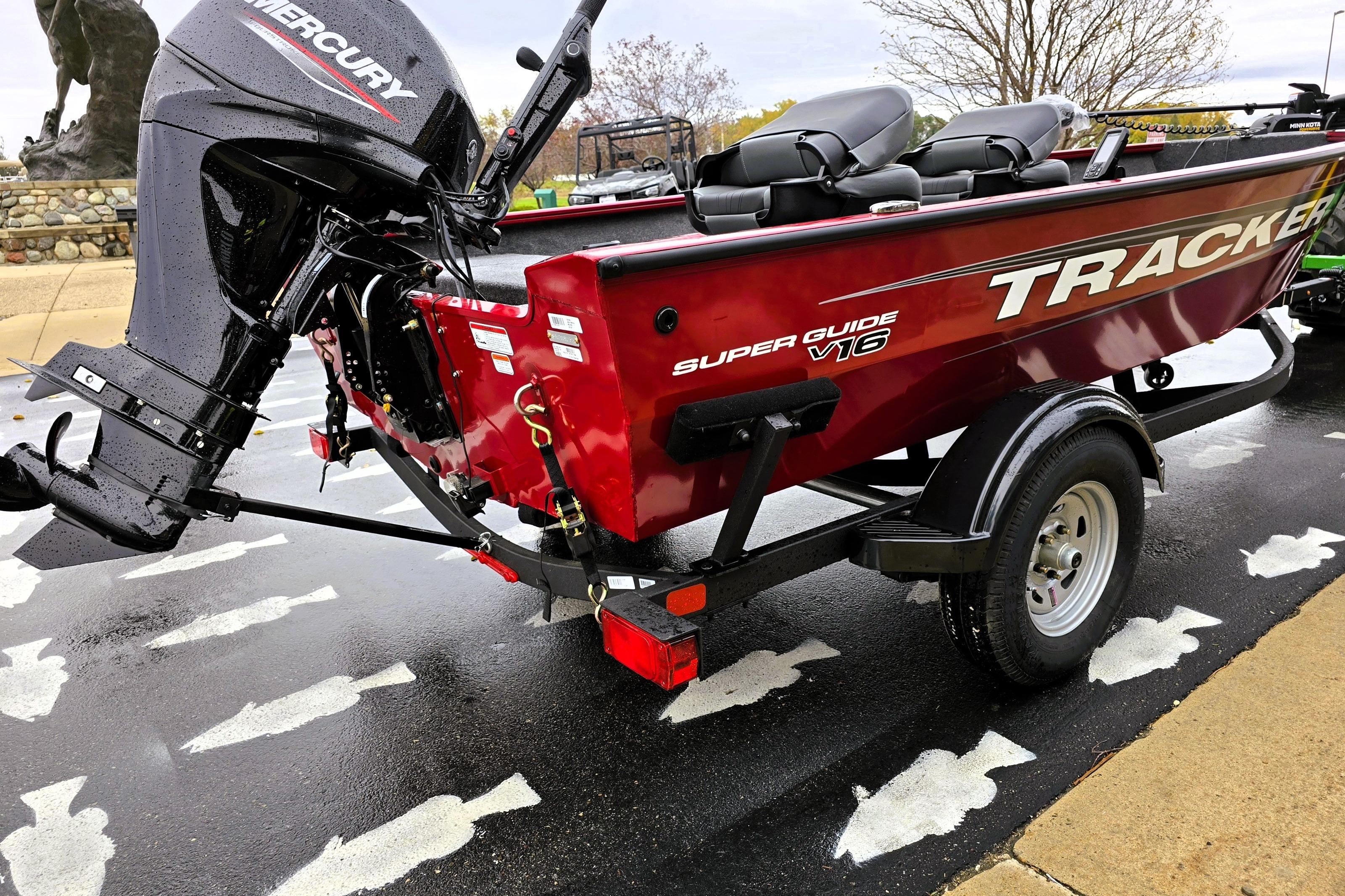 The newest TRACKER begins with a proven and highly acclaimed hull and adds tiller steering for more space, versatility, and simplicity. The Super Guide V-16 Tiller features the same sturdy, proven, and guaranteed build quality as our entire all-welded, rivet-free lineup. With increased cockpit space and a non-skid flooring, the new Super Guide V-16 Tiller is as wide open for possibilities as your day. It's equipped with spacious storages, multiple seating locations, an intuitive and well-equipped gauge pod, and of course, the same peace of mind that runs throughout our lineup. With the tiller in hand, you command smooth, reliable Mercury® power and a boat that's the result of decades of passionately pursuing excellence.