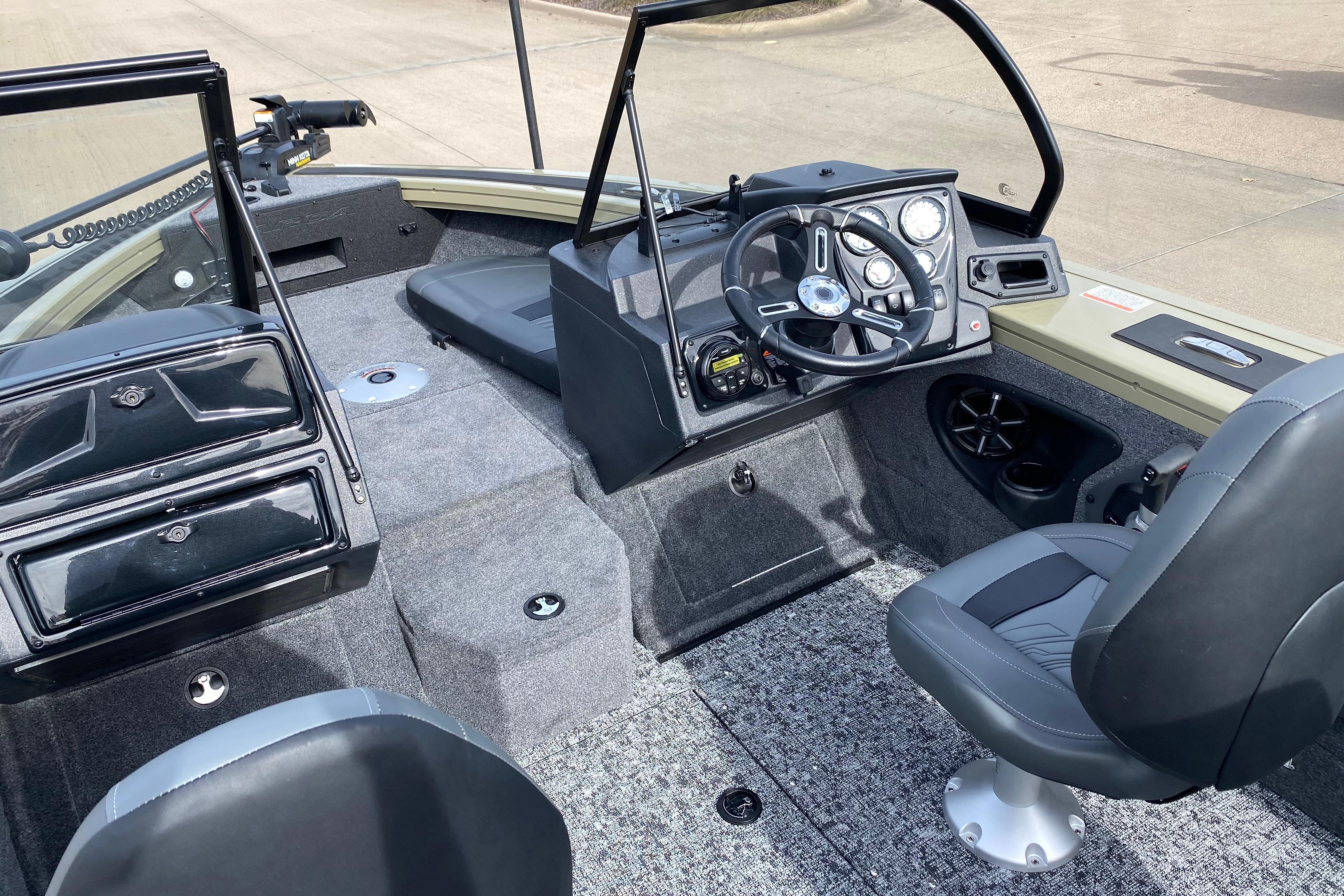 • Bow panel w/trolling motor receptacle, 12V outlet, bow aerator switch & trim switch
